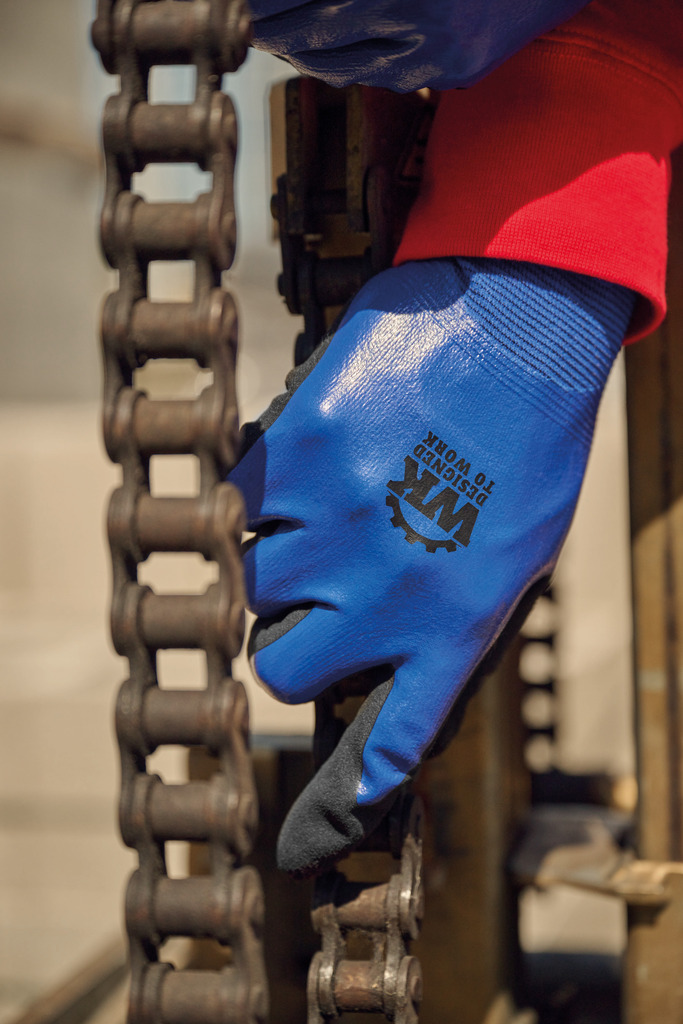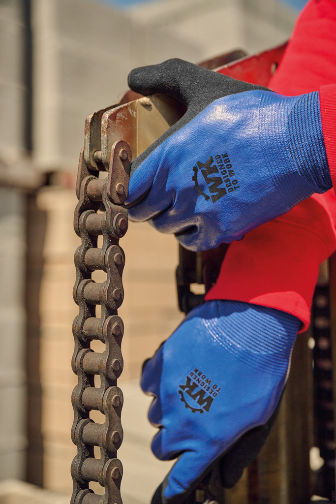 Base tricotada em poliamida e elastano. Arqueado 18. Indução em nitrilo liso na parte superior da luva e indução em nitrilo arenoso na palma e nos dedos. Punho elástico e acabamento da luva elástico de cor que varia em função do tamanho. Lavável a 40°C. EPI Classe II. Normas NF EN ISO 21420:2020 (Luvas de protecção – Requisitos gerais e métodos de ensaio), NF EN 388+A1:2018 (Luvas de protecção contra riscos mecânicos): NÃveis de desempenho 4121A. Peso de um par de luvas em tamanho 10: 84g