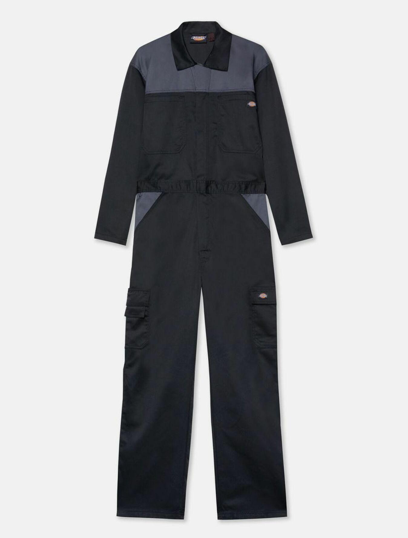 65% poliéster, 35% algodão. Macacão com pinça nas costas para liberdade de movimentos. Cintura elástica na parte traseira. Bolsos laterais. Bolsos de carga laterais nas duas pernas. Lavável a 60°.