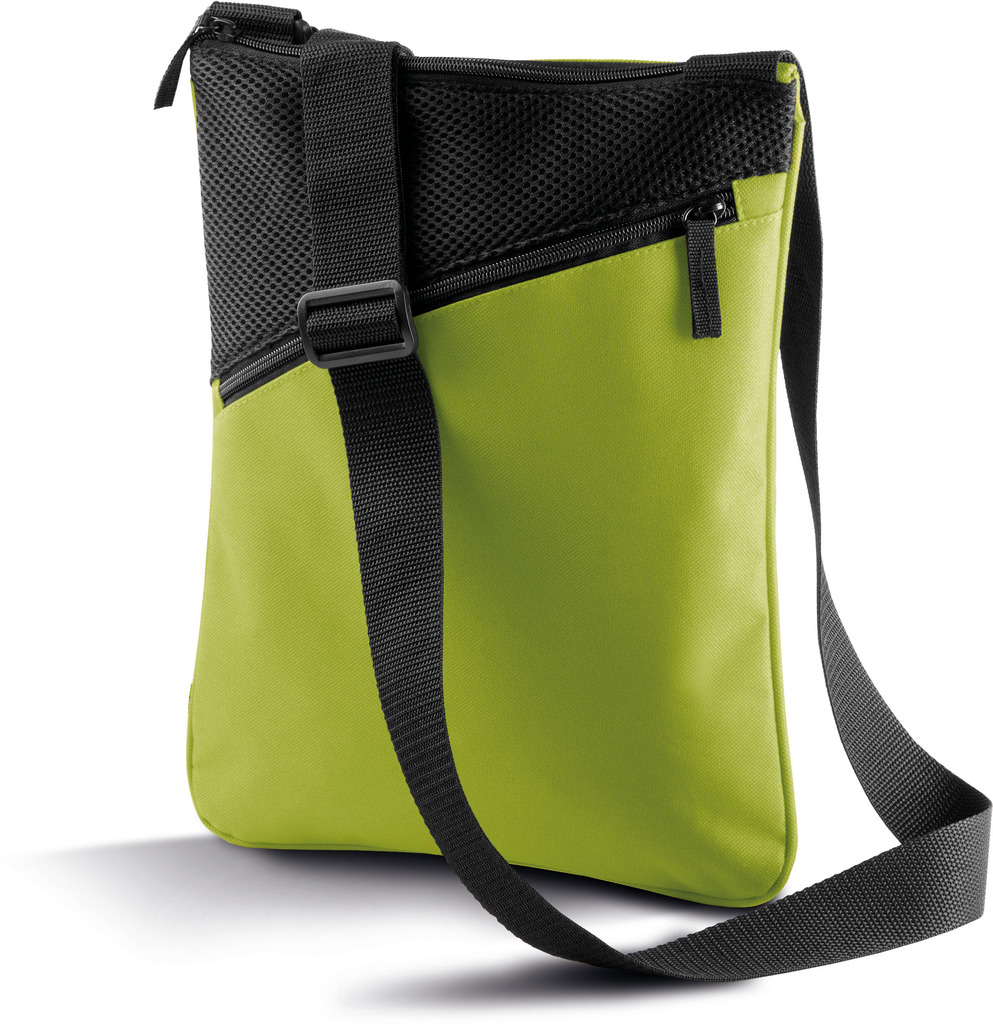 Mala a tiracolo em 600D, bolso frontal, alça ajustável.