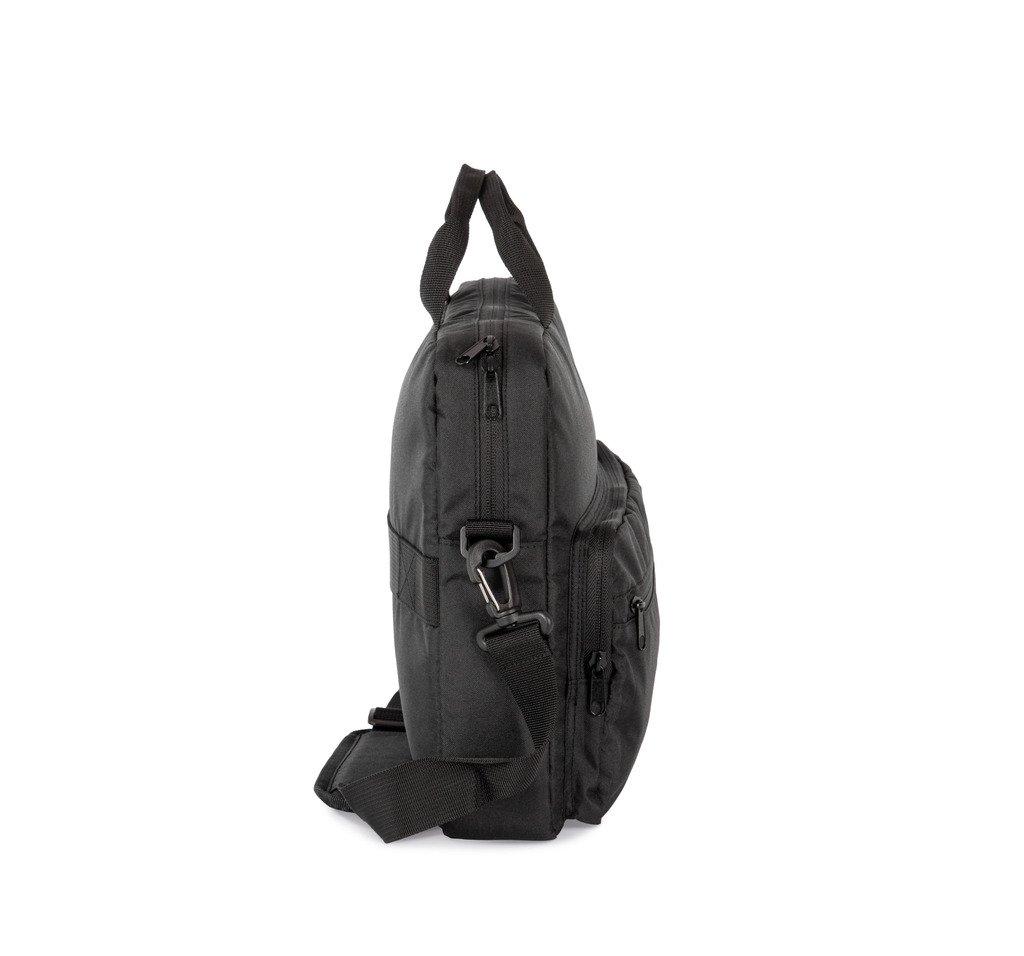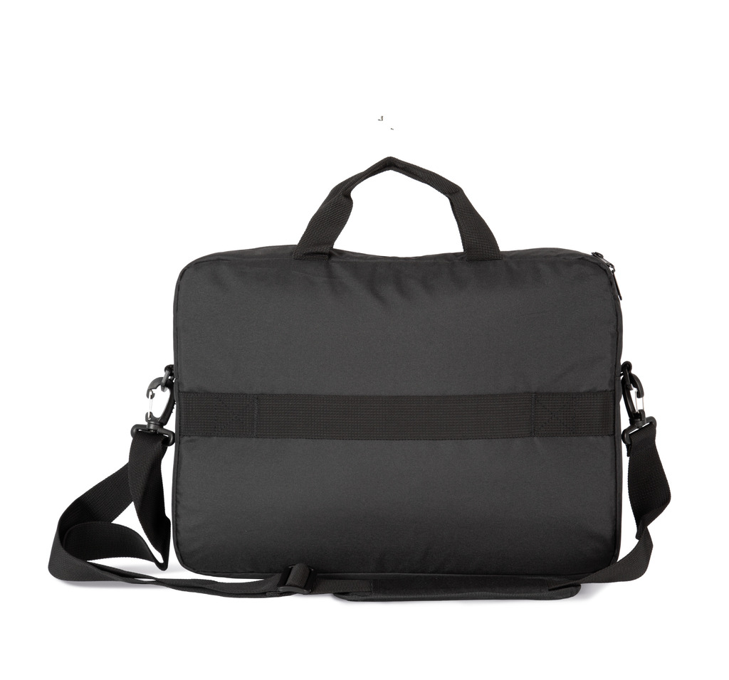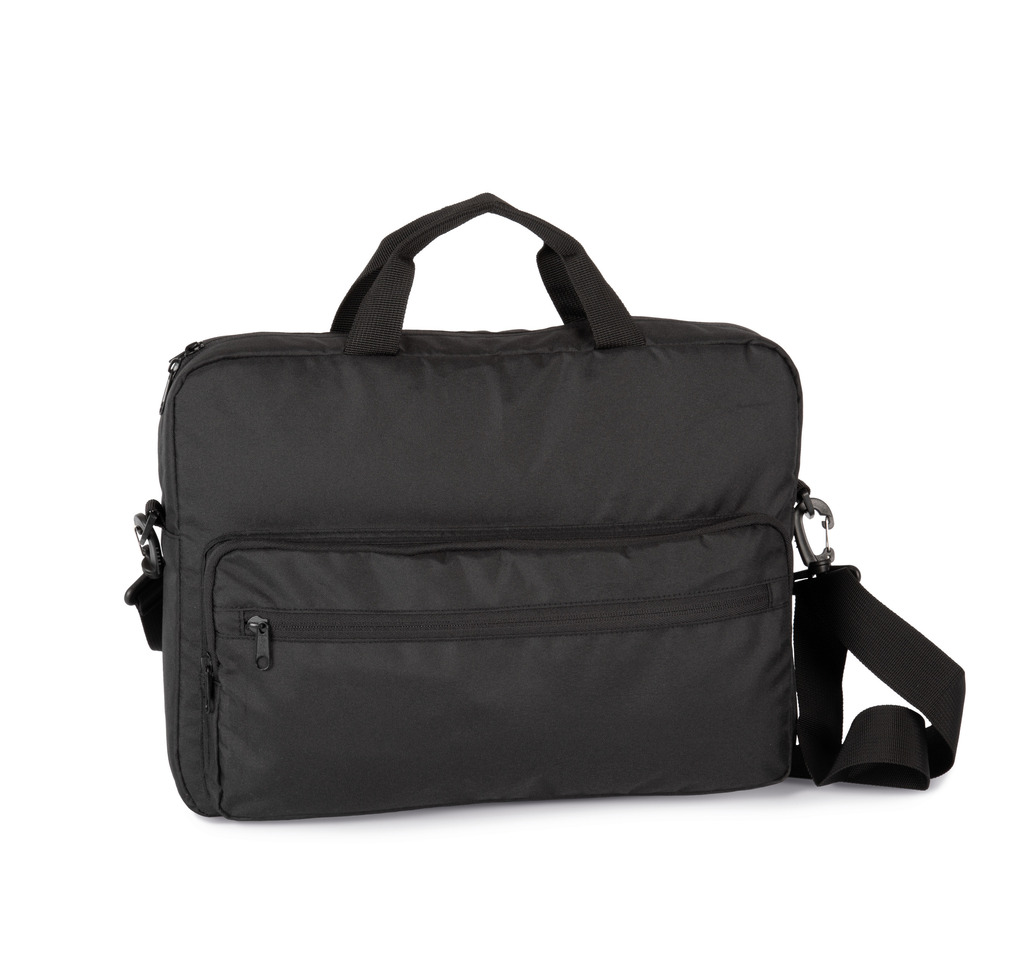 100% poliéster. Mala profissional concebida a partir de 60% poliéster reciclado. Bolso duplo frontal com fecho para facilitar a personalização. Compartimento principal acolchoado computador (porta-computador) até 15 polegadas. Presilha na parte traseira para fixação num trolley.