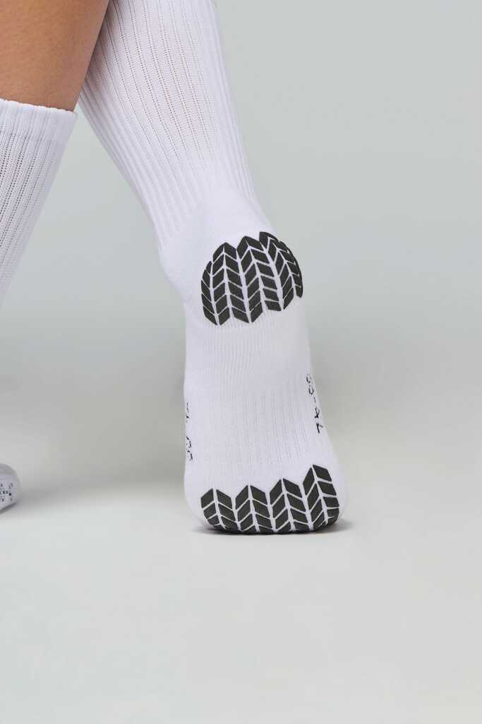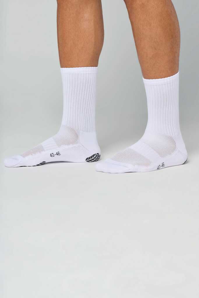 72% poliéster / 25% poliamida / 3% elastano. Malha turca no interior. Costura plana junto aos dedos dos pés. Malha ergonómica para maior conforto e protecção. Pontos antiderrapantes na sola. Entregue em embalagem individual e cabide de cartão, pronta a pendurar na prateleira.