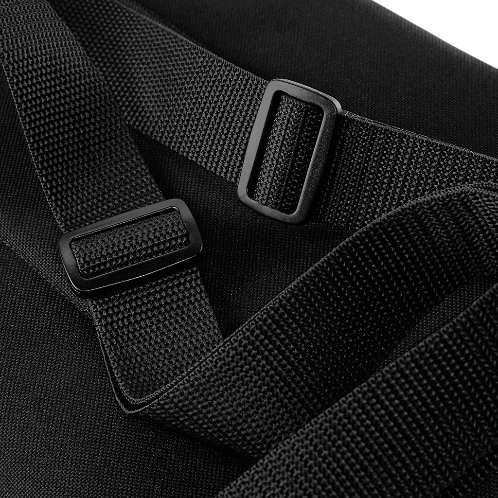 Poliéster 600D. Etiqueta amovÃvel. Alças a tiracolo ajustáveis. Bolso frontal com fecho. Costas acolchoadas. Pega de transporte.