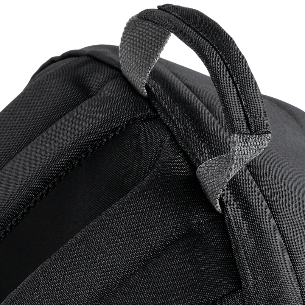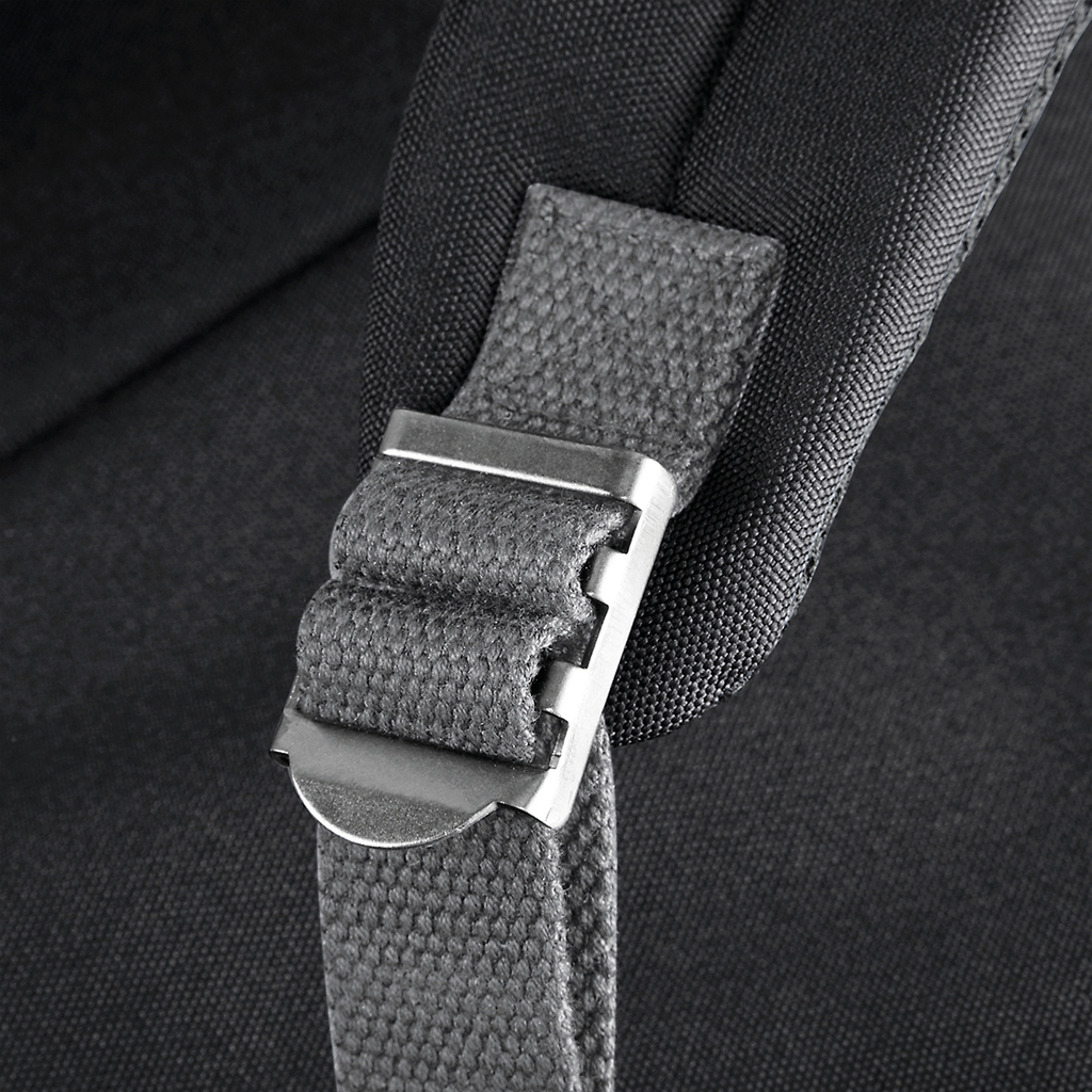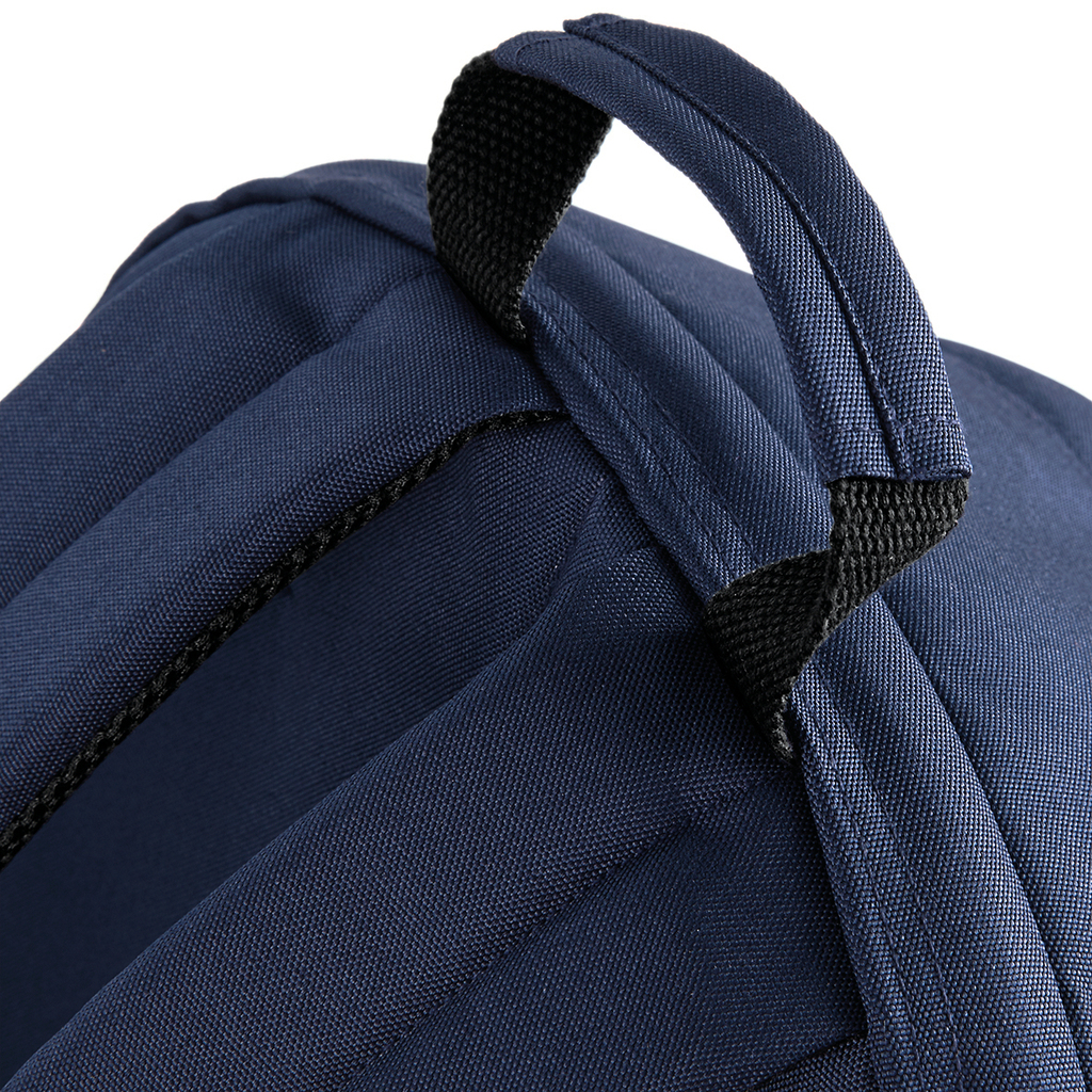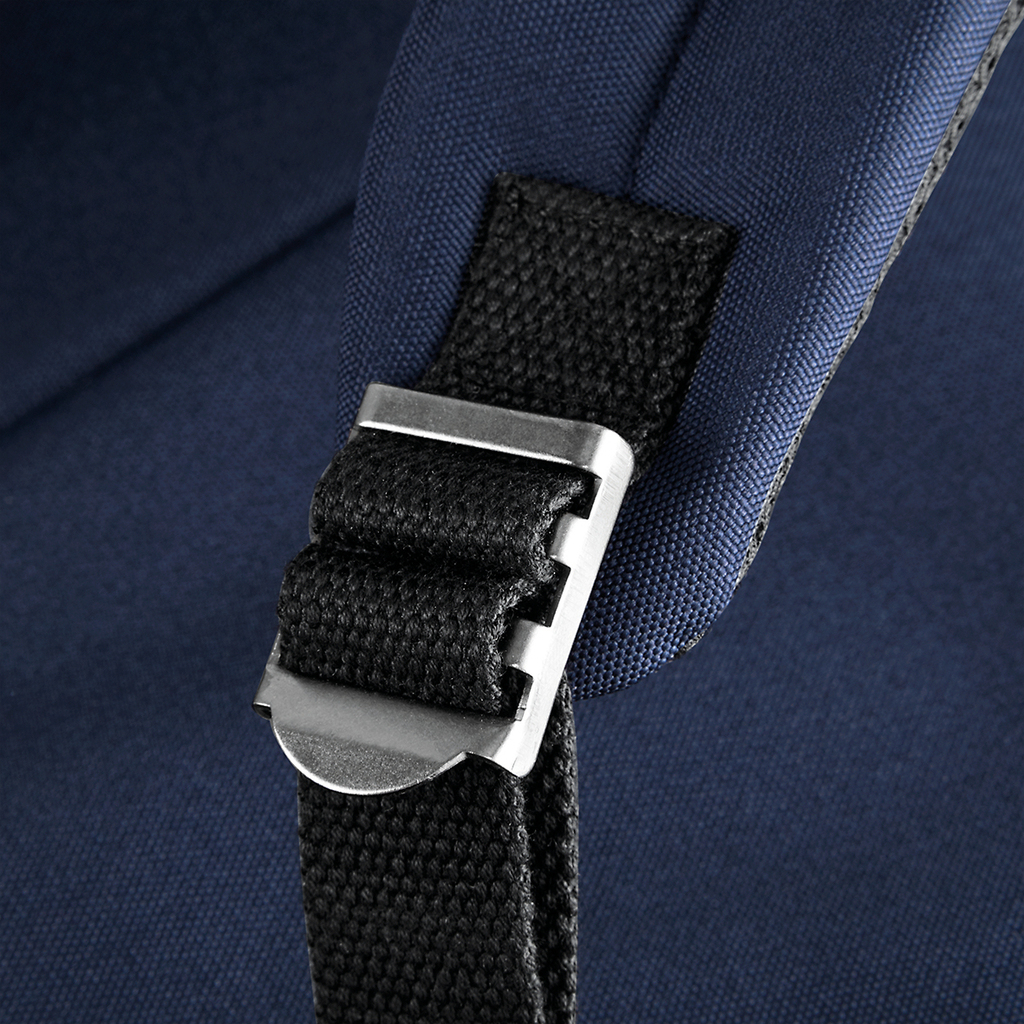 Poliéster 600D. Etiqueta amovível. Compatível com computadores portáteis até 15,6”. Compartimento acolchoado para computador portátil com acesso externo. Bolso frontal com fecho. Costas acolchoadas. Alças a tiracolo acolchoadas ajustáveis em malha de rede. Pega de transporte acolchoada.