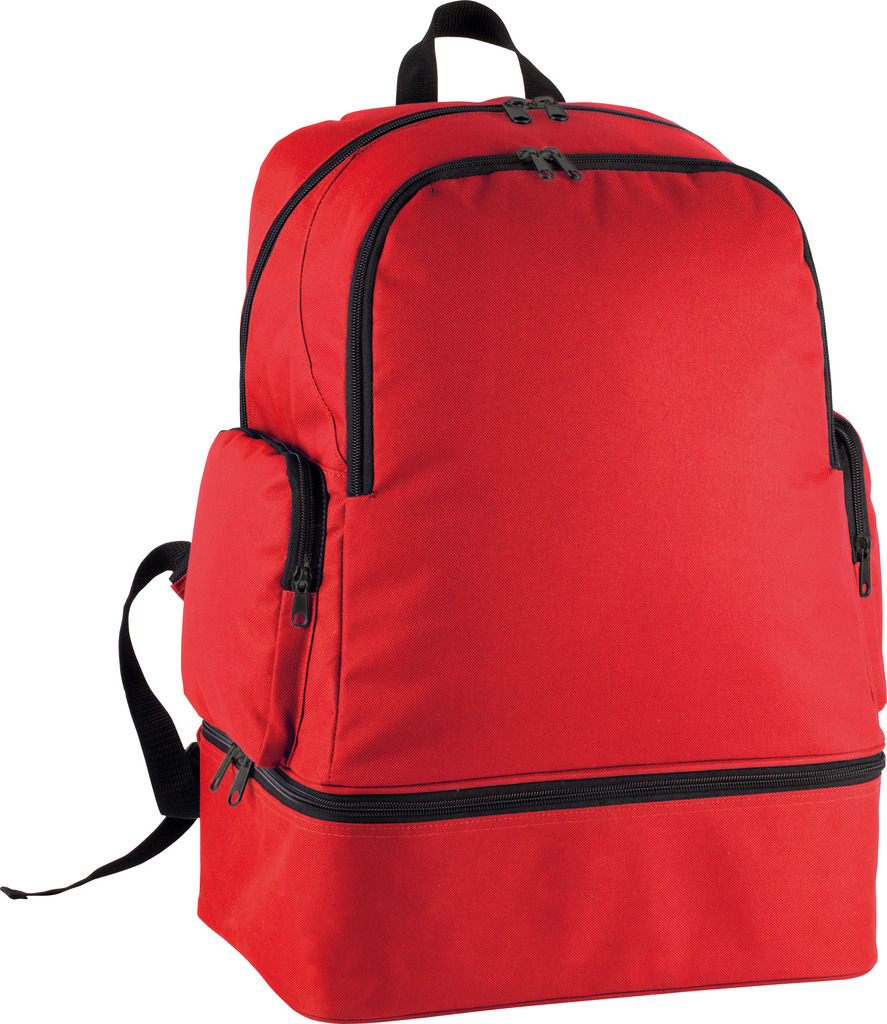 Mochila de desporto em poliéster 600D. Base rÃgida amovÃvel em polipropileno com pés em plástico. Bolso na zona frontal com fecho para facilitar a personalização, 2 bolsos laterais, porta-cartões. Base rÃgida fornecida com a mochila. 42L