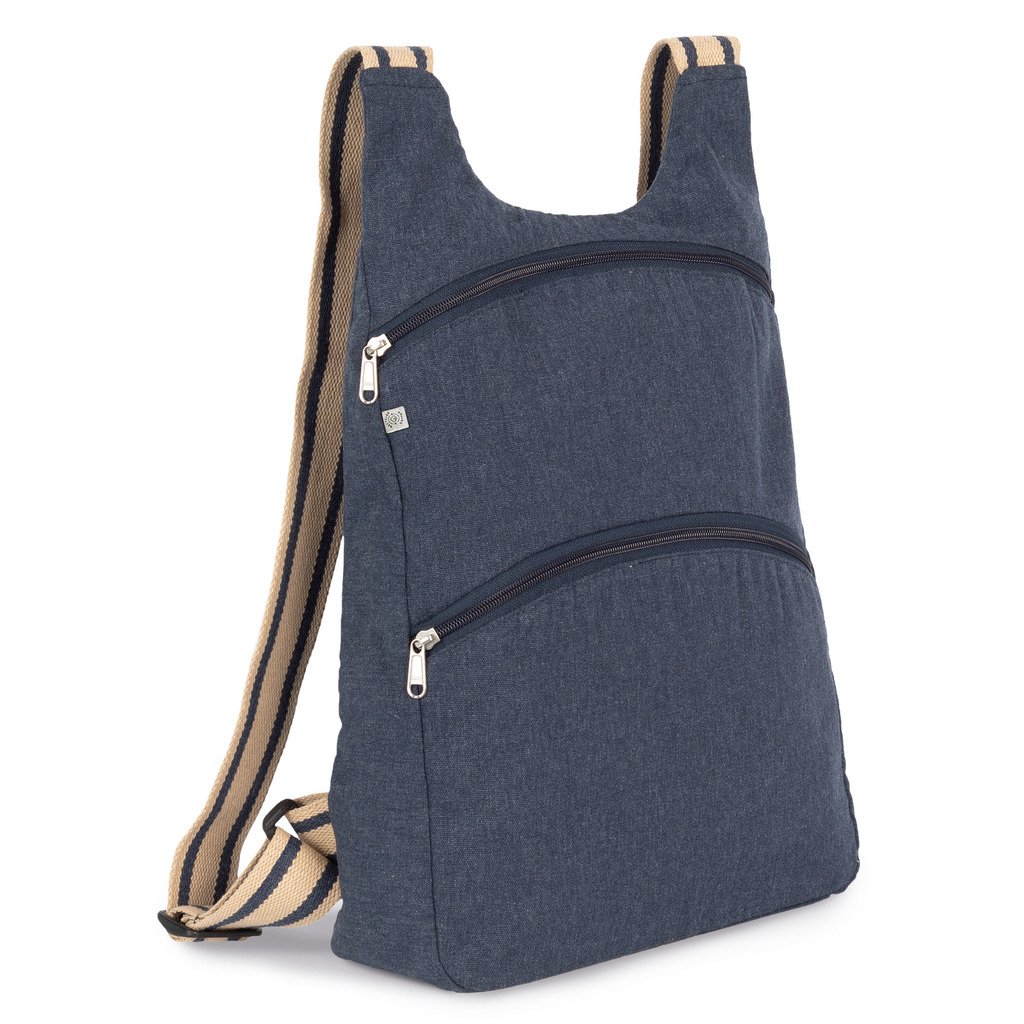 75% algodão reciclado pré-consumo / 22% poliéster reciclado pós-consumo / 3% outras fibras. ONE SIZE (28 x 10 x 47 cm). Capacidade: 13 l. As alças com cores em contraste apresentam grafismos às riscas e medem 73 cm de comprimento e 4,25 cm de largura para conferir maior conforto.