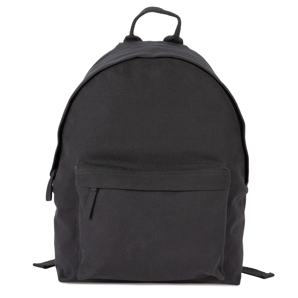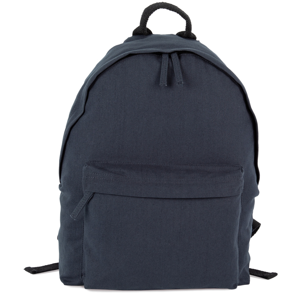 100% algodão. Mochila com bolso frontal com fecho, costas acolchoadas, alças ergonómicas e ajustáveis.