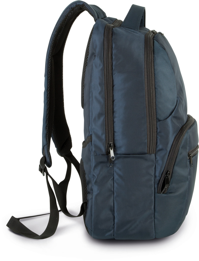 Mochila em poliéster 1680D com contrastes em poliéster jacquard. Compartimento acolchoado para computador até 15”. Compartimento porta-documentos central, com espaço para tablet e bolso com fecho interior. 2 bolsos com fecho na parte frontal. Alças ergonómicas e costas acolchoadas. Costas com encaixe para fixação a um trolley.