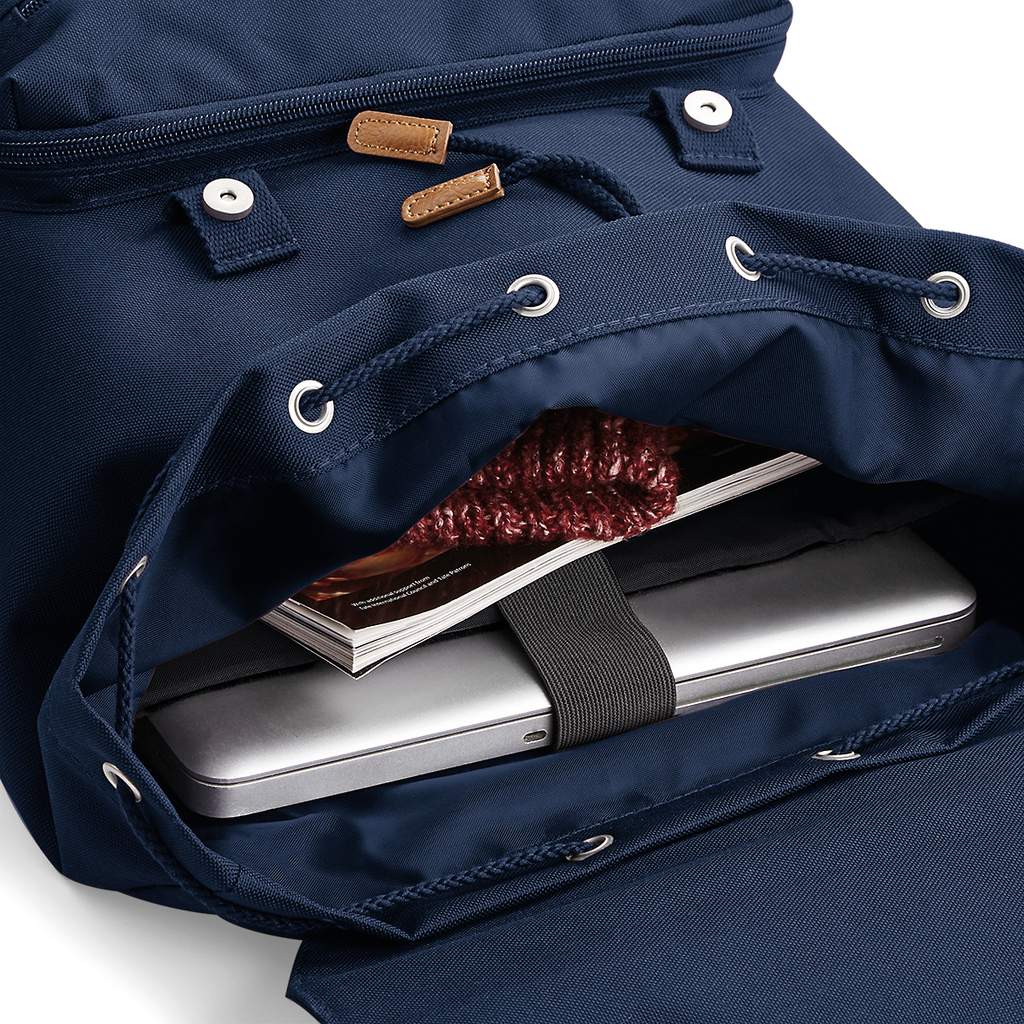 Poliéster 600D, compatível com computadores portáteis até 17″, etiqueta amovível “tearaway”, costas acolchoadas, detalhes em poliuretano e metal, bolso EasyPocketâ„¢ facilmente acessível para a personalização, compartimento acolchoado para o computador portátil, fecho com cordão, alças a tiracolo acolchoadas ajustáveis, fechos magnéticos, pegas de transporte.