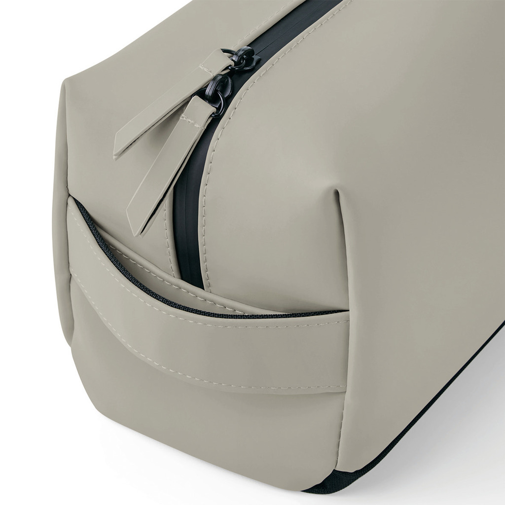 100% poliuretano reciclado. Revestimento em poliuretano mate sem PVC. Nécessaire em tecido repelente à água com estilo minimalista multiusos. Um compartimento principal com abertura grande para um acesso fácil. Fecho e pega para transporte. Etiqueta amovÃvel TearAway, fácil de reetiquetar.