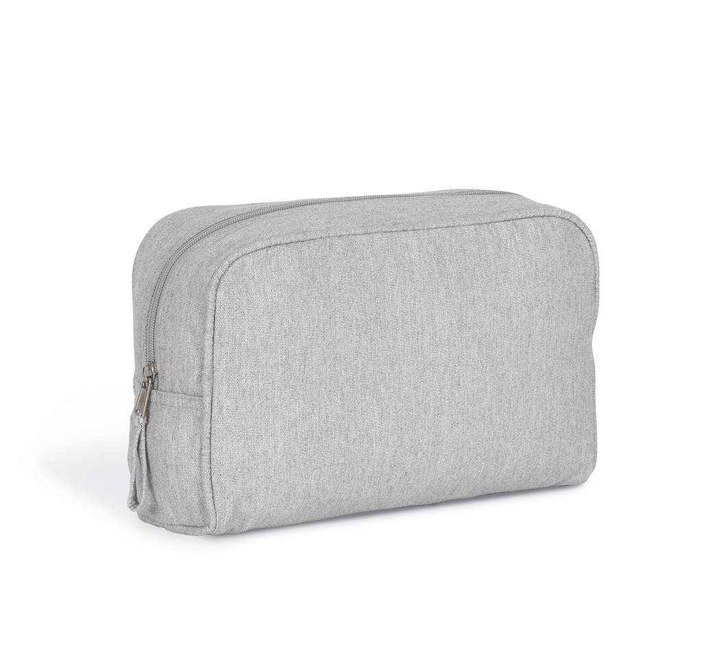 Black Night: 67% algodão reciclado/30% poliéster reciclado/3% de outras fibras. Ecume e Pebble Grey: 75% algodão reciclado/22% poliéster reciclado/3% de outras fibras. Este artigo pode ser utilizado como nécessaire ou bolsa de arrumação. O interior da bolsa está reforçado com um termocolante.