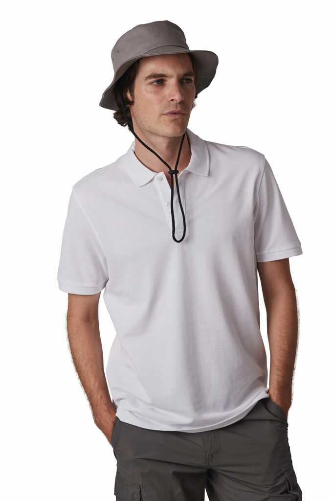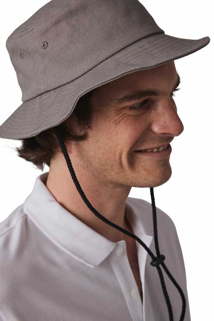 100% algodão. Panamá estilo bucket hat em algodão. Cordão com stopper. Etiqueta da marca Tear-away.