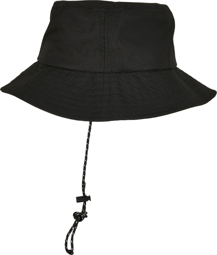 100% poliéster. Este panamá é um acessório para todos os dias, ideal e descontraído. Esta versão possui por baixo um cordão de segurança prático com um fixador, que não agradará apenas aos naturalistas. Naturalmente, o panamá apresenta um aspecto enrugado, com uma borda inclinada com costuras decorativas paralelas. Fabricado em tecido poliéster robusto.