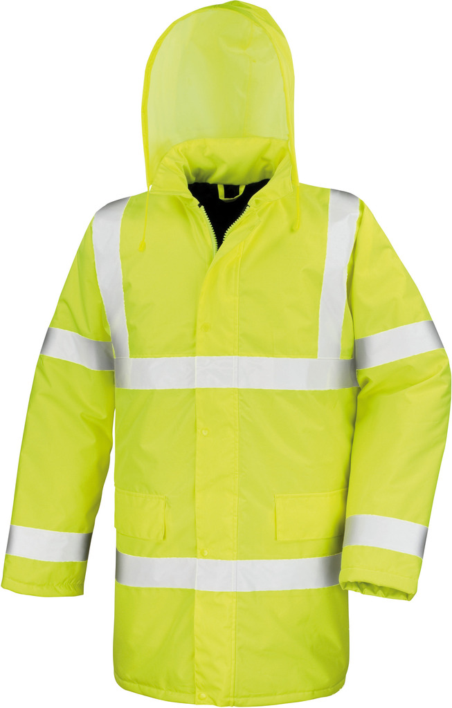 Exterior: poliéster oxford 300D com revestimento PU. Isolamento: acolchoado em Polar-Therm. Forro 100% poliéster 190T adamascado costurado em losangos. Especificação EN ISO 20471:2013 Classe 3. GO/RT 3279 Issue 8:2013 Classe 3 (somente no Orange). Costuras termocoladas impermeáveis. Excelente protecção térmica. Capuz escondido amovÃvel com cordão de ajuste. Com fecho com duplo sentido, altamente resistente, com pala de protecção a todo o comprimento. 2 bolsos laterais grandes com pala de protecção. 1 bolso interior. Faixa de segurança piqué com 50 mm.