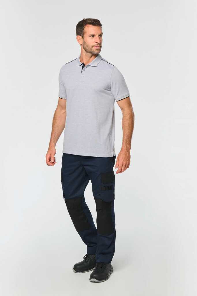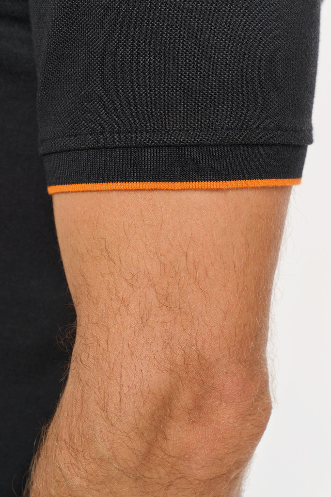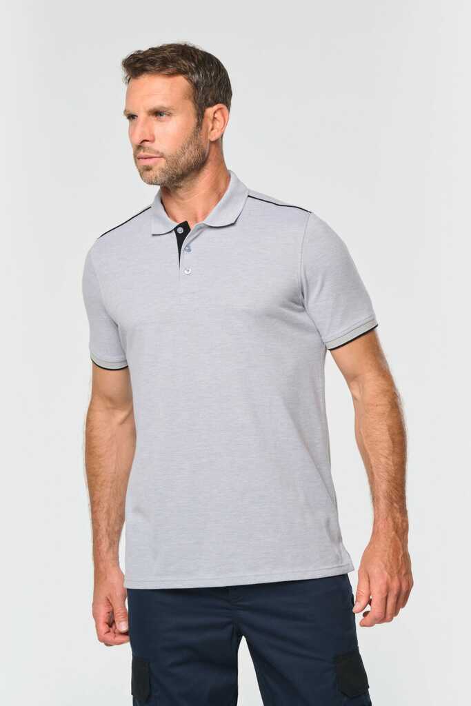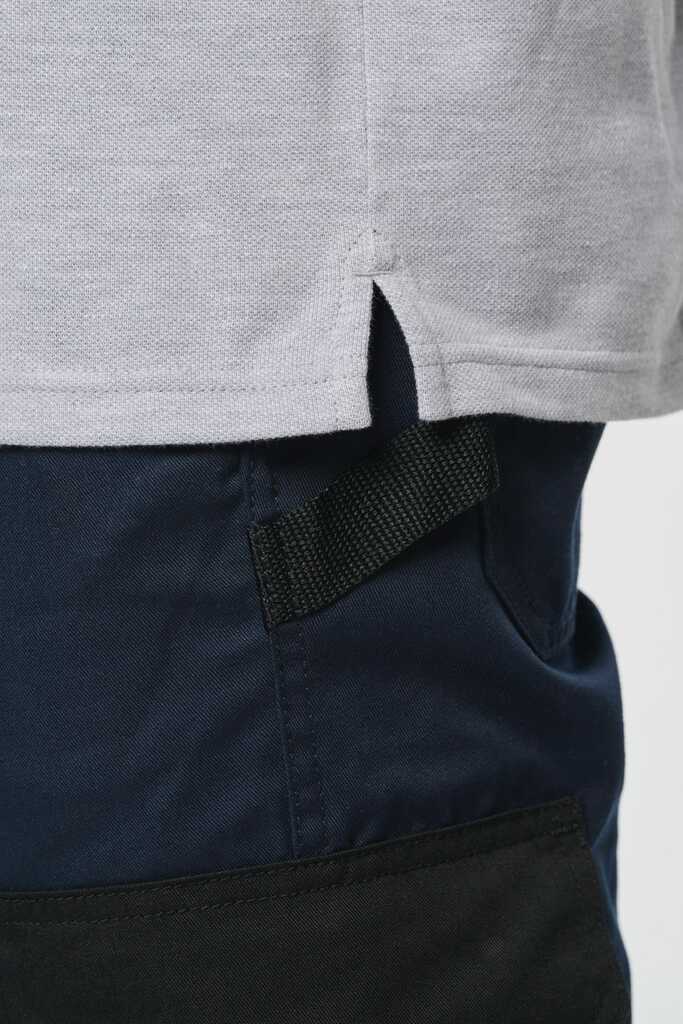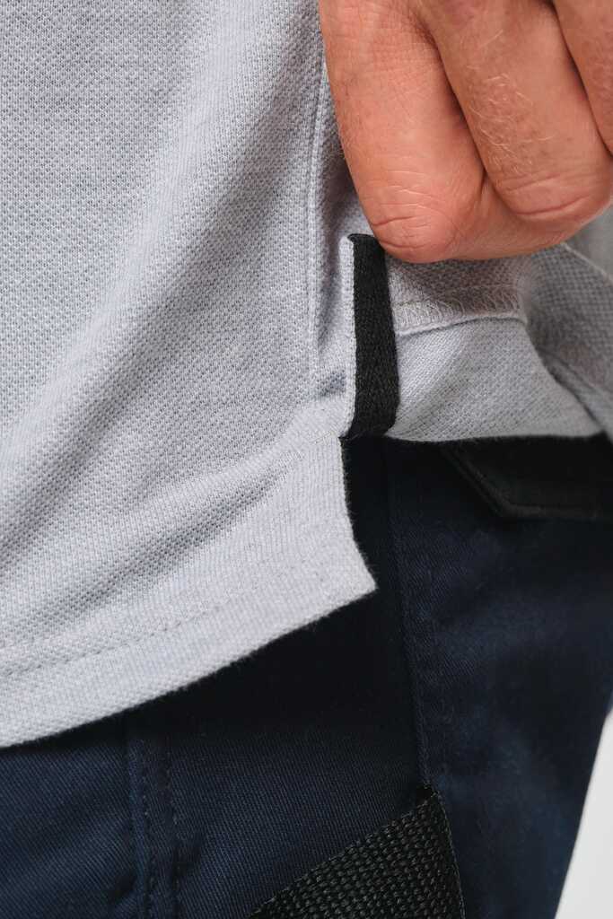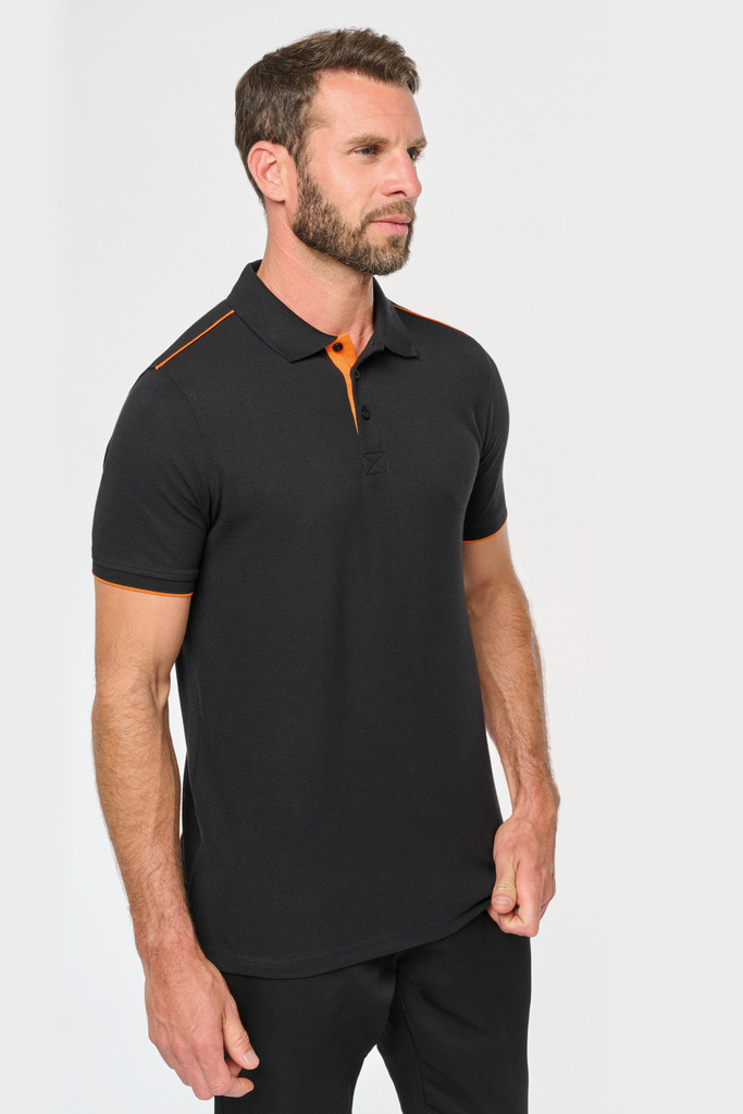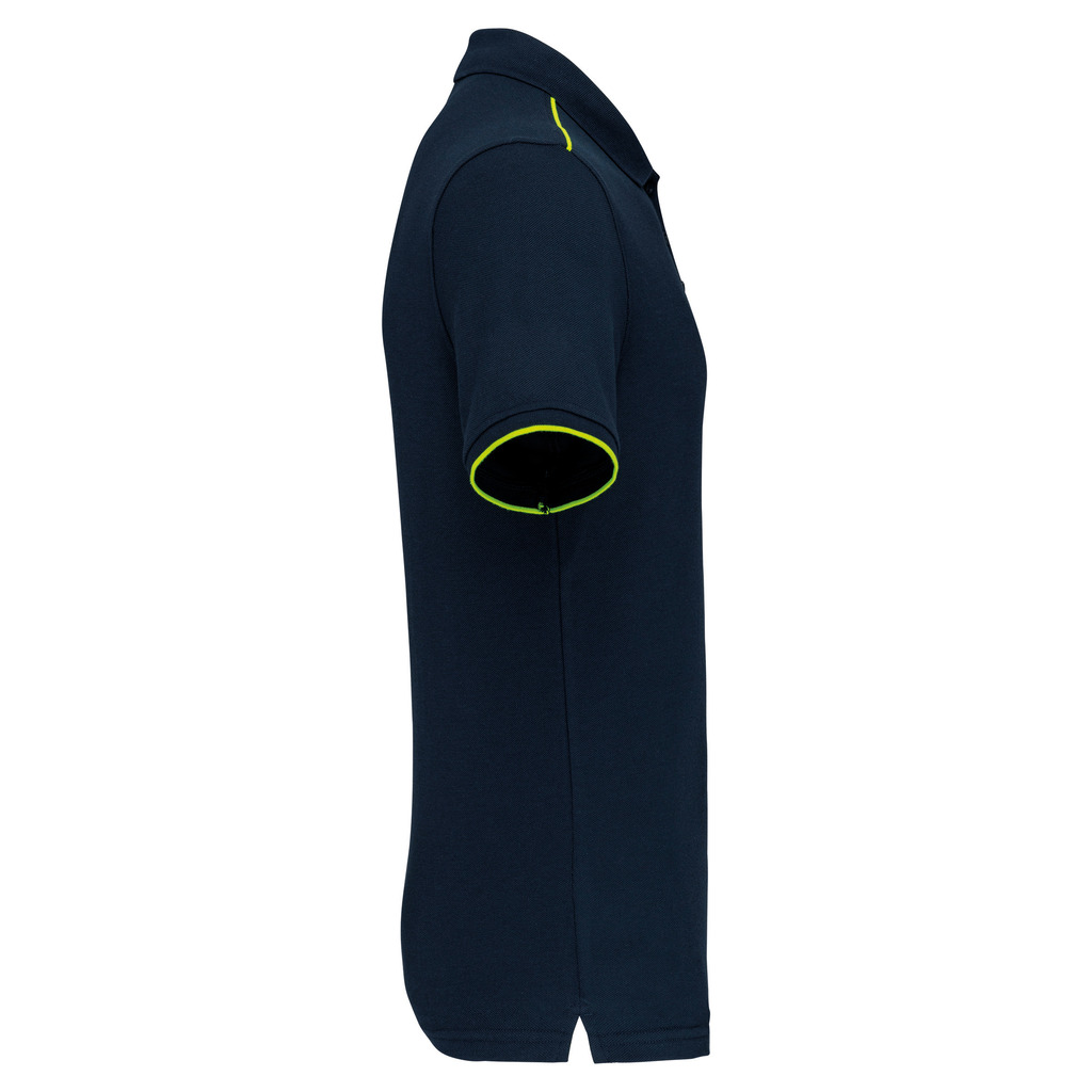 65% poliéster/35% algodão. Algodão penteado malha piqué. Lavável a 60 °C. Tratamento anti-borboto. Carcela com 3 botões com banda interior em contraste. Colarinho em malha rib e tapa costuras. Detalhe em contaste no colarinho e nos ombros. Acabamento da manga em malha rib com detalhe em contraste. Aberturas laterais em contraste para maior conforto. Acabamento da bainha com costura dupla. Ideal para um uso diário.