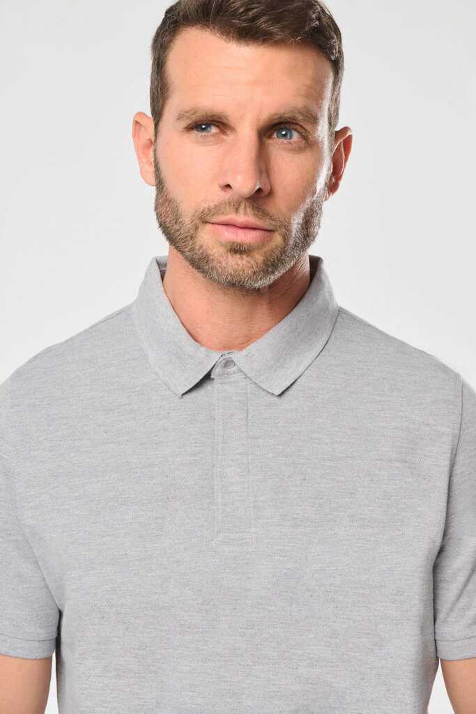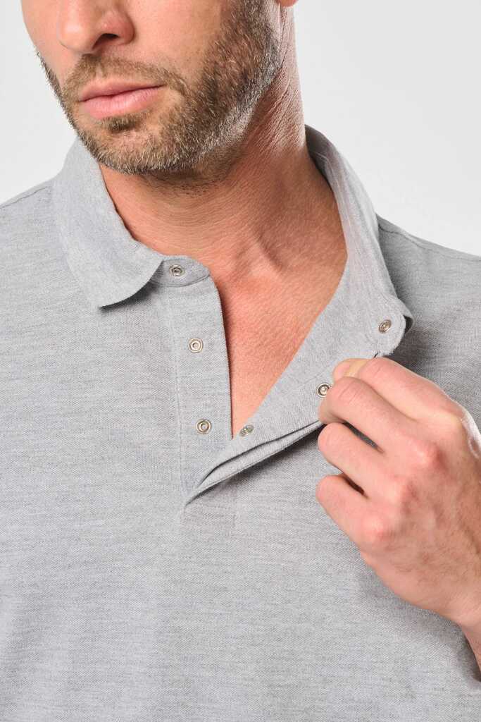 100% algodão (90% algodão/10% viscose nas cores mescladas). Malha piqué em algodão penteado. Lavável a 60 °C (40 °C nas Oxford Grey). Colarinho com acabamento em malha rib. Carcela com 3 molas de pressão. Acabamento da manga em malha rib. Aberturas laterais. Acabamento da bainha com costura dupla.
