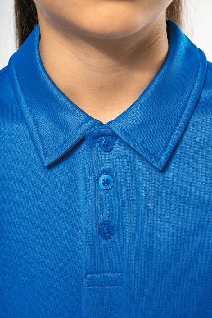 100% poliéster. Malha interlock com 50% poliéster Cool Plus®. Polo leve, respirável. Carcela com 3 botões. Acabamento costura dupla.