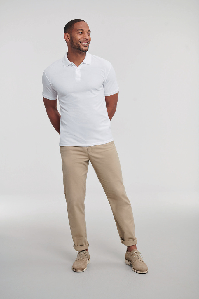 65% poliéster / 35% algodão. Carcela com 2 botões. Botões tom sobre tom. Costuras reforçadas ao nÃvel dos ombros. Tapa costuras no colarinho. Corte clássico. Lavável a 60º.