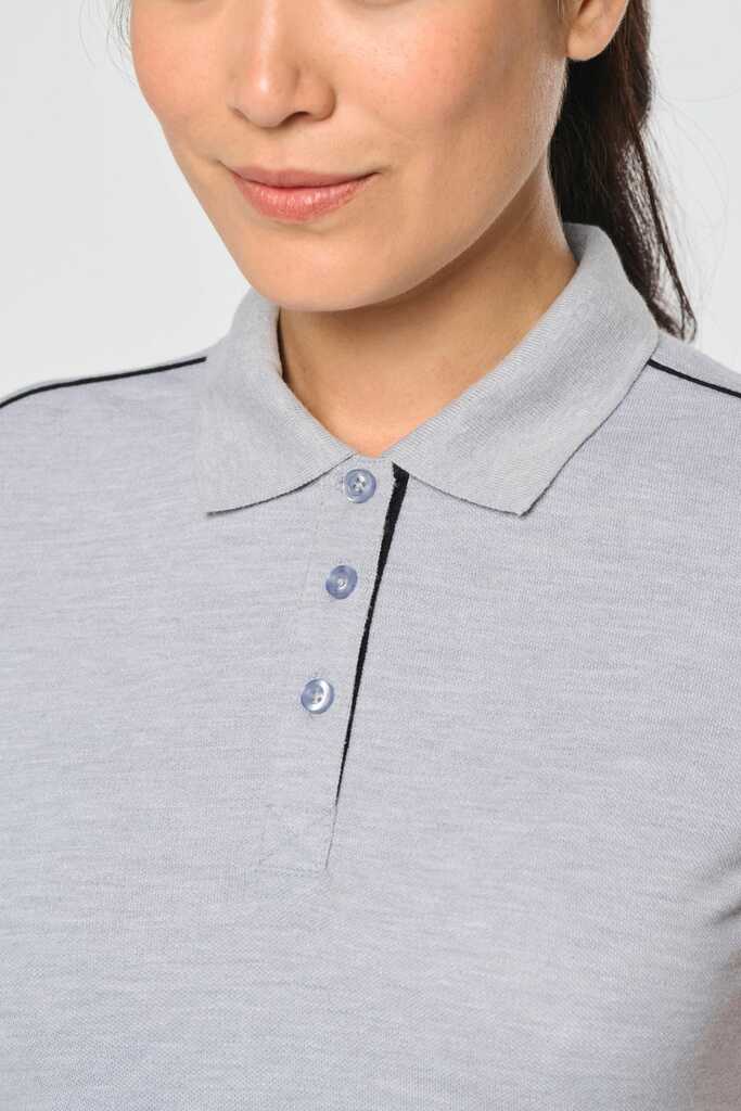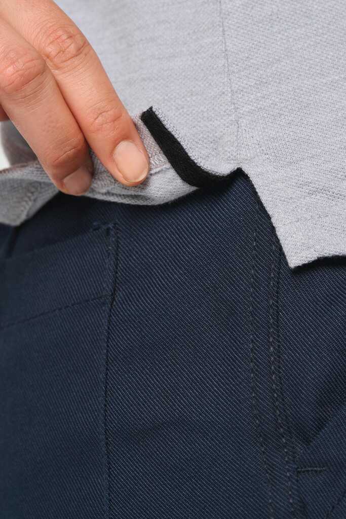 65% poliéster/35% algodão. Algodão penteado malha piqué. Lavável a 60 °C. Tratamento anti-borboto. Carcela com 3 botões com banda interior em contraste. Colarinho em malha rib e tapa costuras. Detalhe em contaste no colarinho e nos ombros. Acabamento da manga em malha rib com detalhe em contraste. Aberturas laterais em contraste para maior conforto. Acabamento da bainha com costura dupla. Ideal para um uso diário.