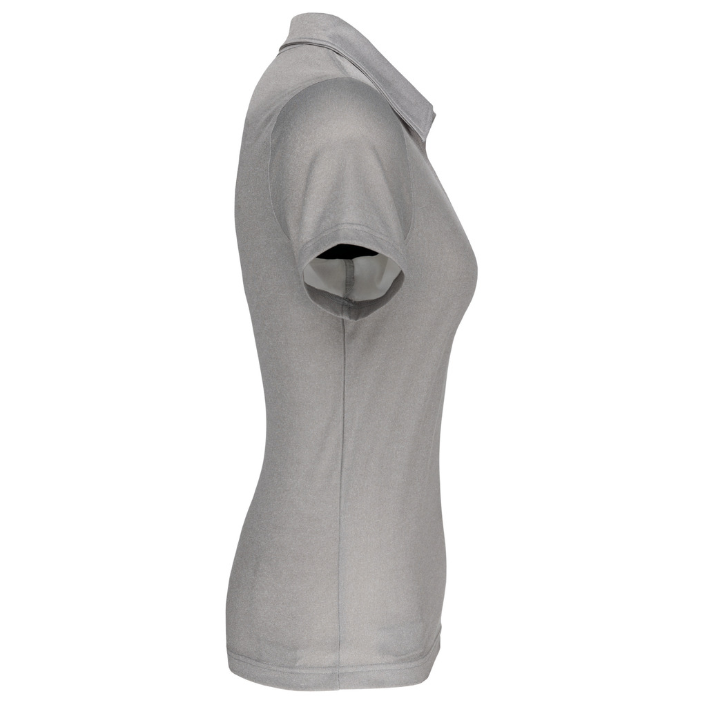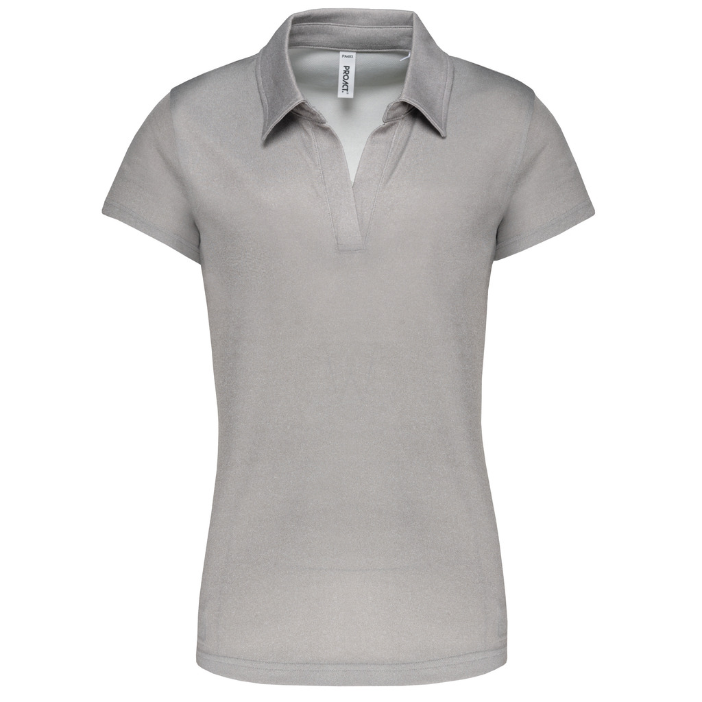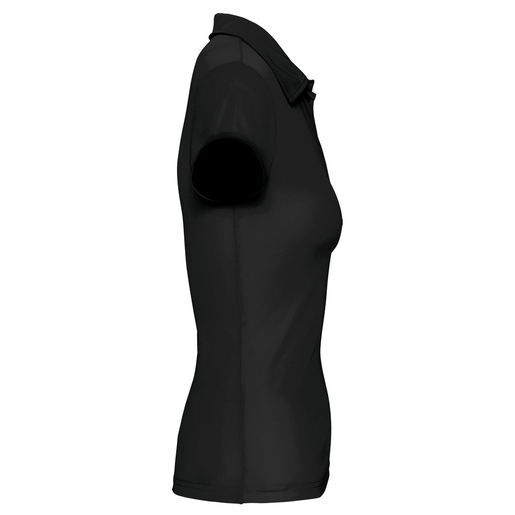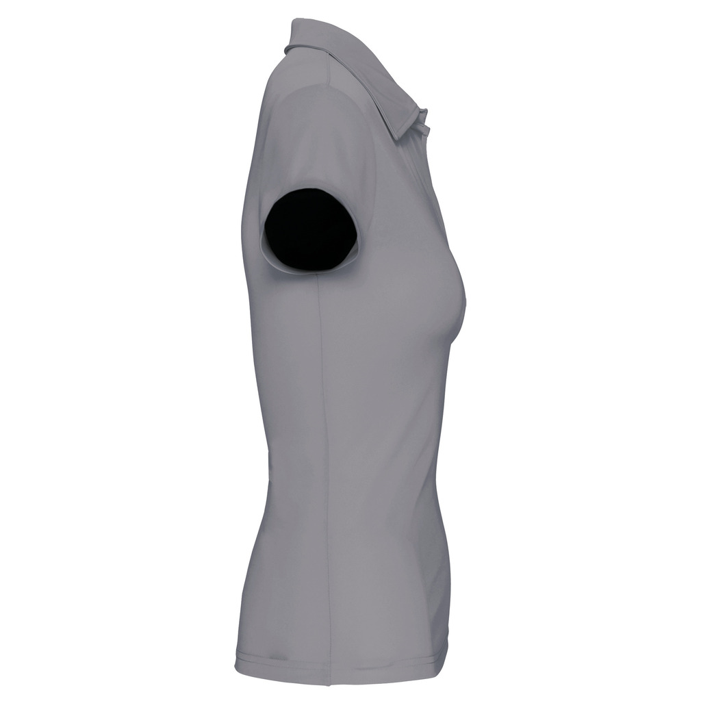 100% Poliéster. Malha interlock com 50% poliéster “Cool Plus®”. Material respirável. Acabamento dupla costura. Carcela sem botões com colarinho do mesmo tecido.