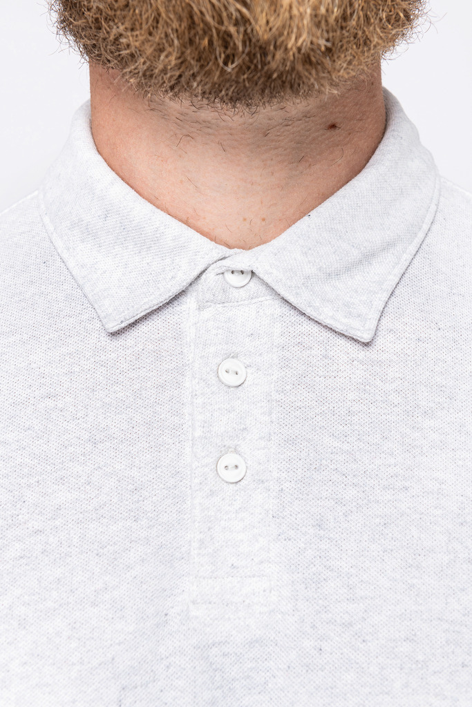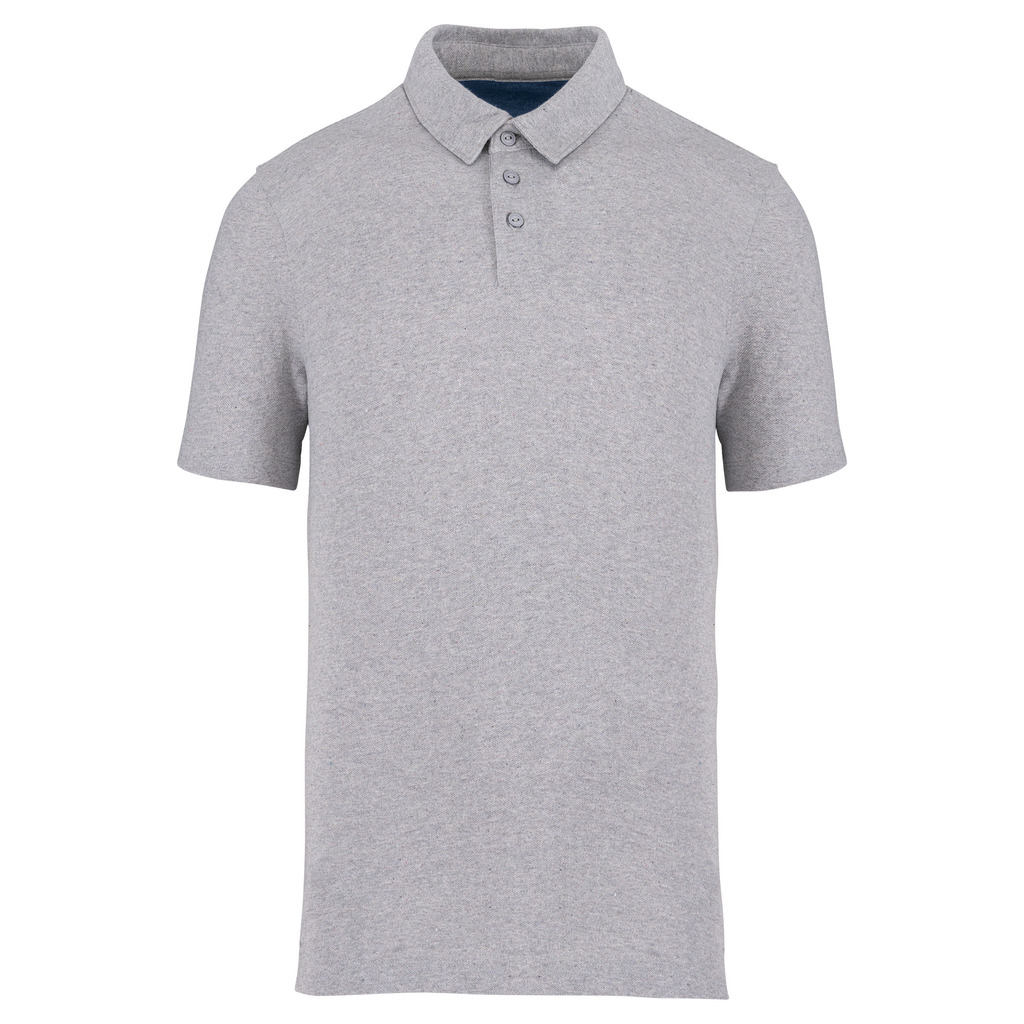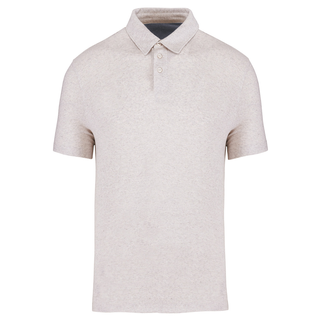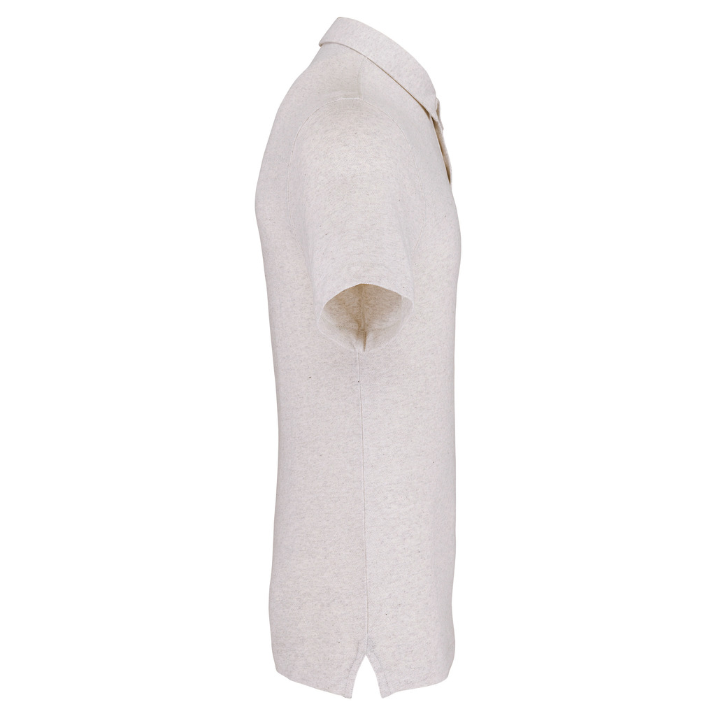 55% algodão reciclado pré-consumo. 45% poliéster reciclado pós-consumo. Corte justo. Carcela com 3 botões. Colarinho no material principal. Meia-lua em contraste nas costas. Abertura lateral com acabamento interior em contraste.