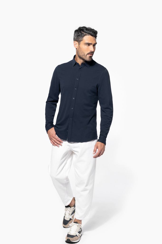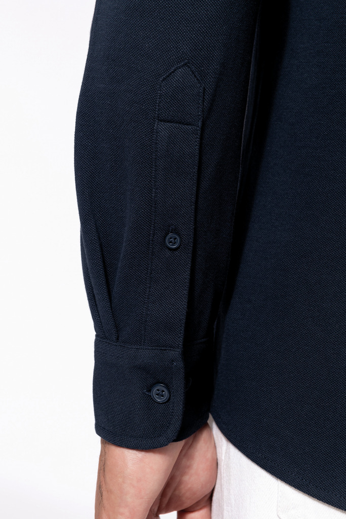 100% algodão penteado piqué (Oxford Grey: 90% algodão / 10% viscose). Material flexÃvel e confortável. Carcela clássica com botões à cor. Punhos reguláveis com botões à cor. Bainha arredondada.
