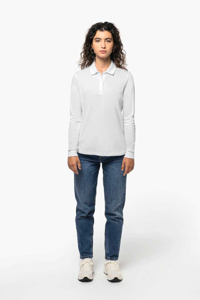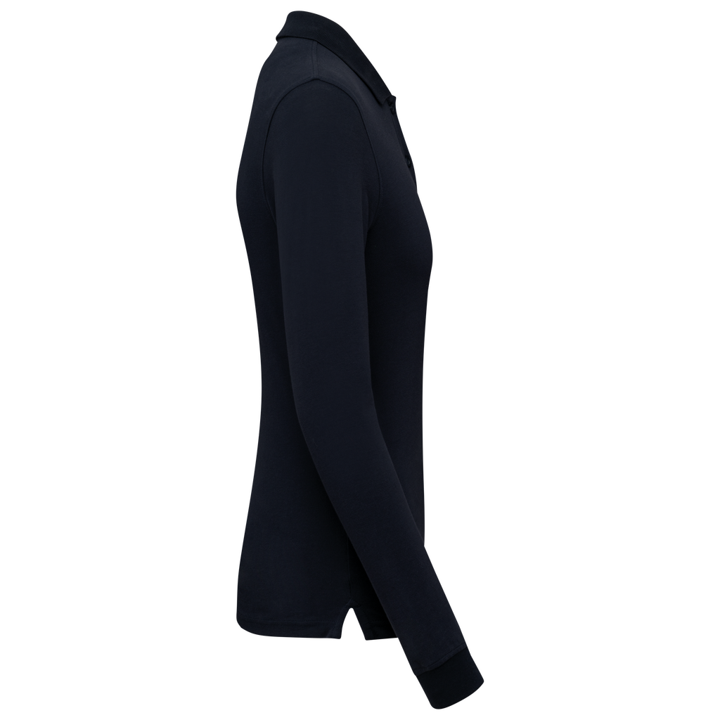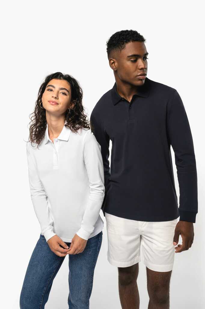 100% algodão biológico. Algodão penteado. Malha piqué. Corte justo. Com banho de enzimas. Manga comprida. Costuras laterais. Colarinho e punhos em malha rib 1×1. Carcela com 2 botões tom sobre tom. Tapa-costuras no material principal tom sobre tom no acabamento interior do colarinho. Reforço nos ombros. Aberturas laterais. Acabamento costura dupla na bainha. Sem etiqueta de marca, apenas indicação de tamanho amovível para facilitar a personalização.