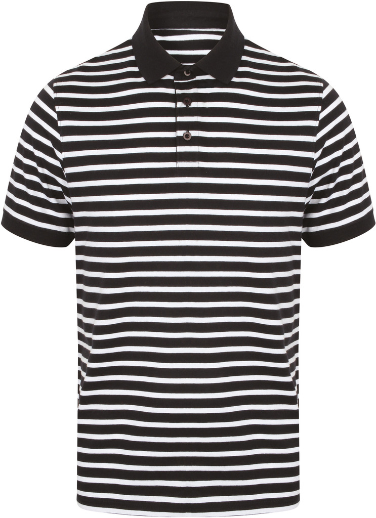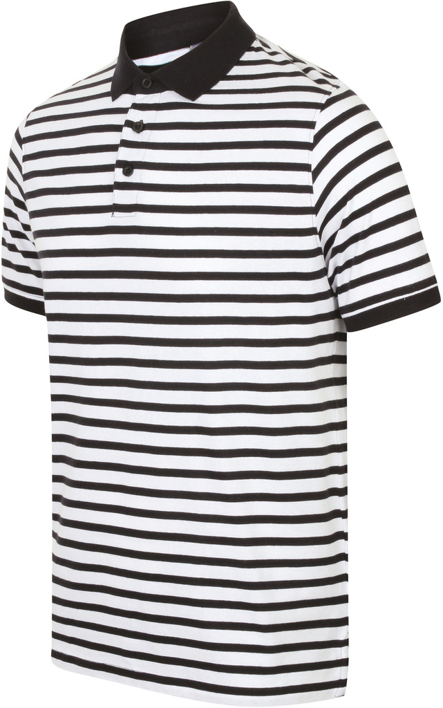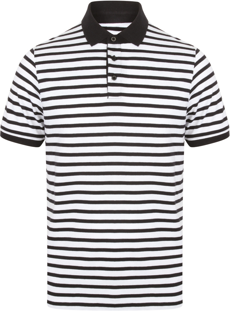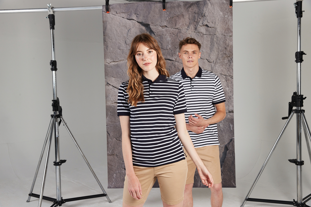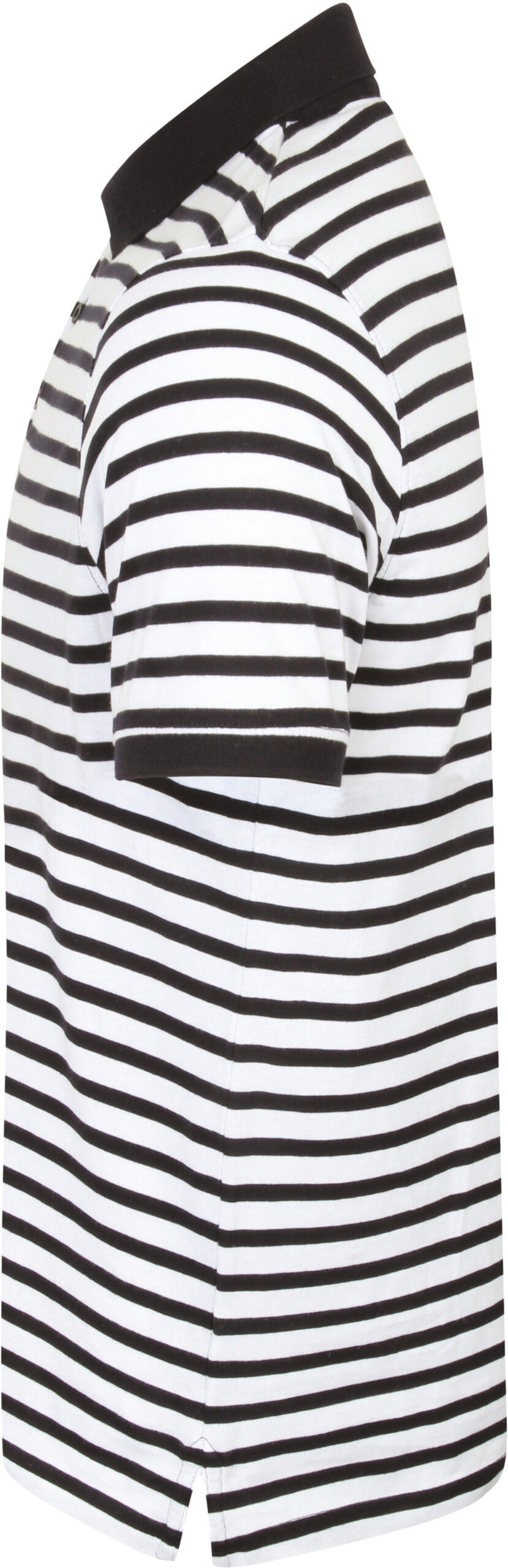 100% algodão jersey. Colarinho e acabamento da manga em malha com elastano. Base do colarinho e carcela em jersey. Carcela com 3 botões em cor Navy. Aberturas laterais com efeito chevron. Acabamento da bainha com costura dupla. Sem etiqueta para uma personalização mais fácil.