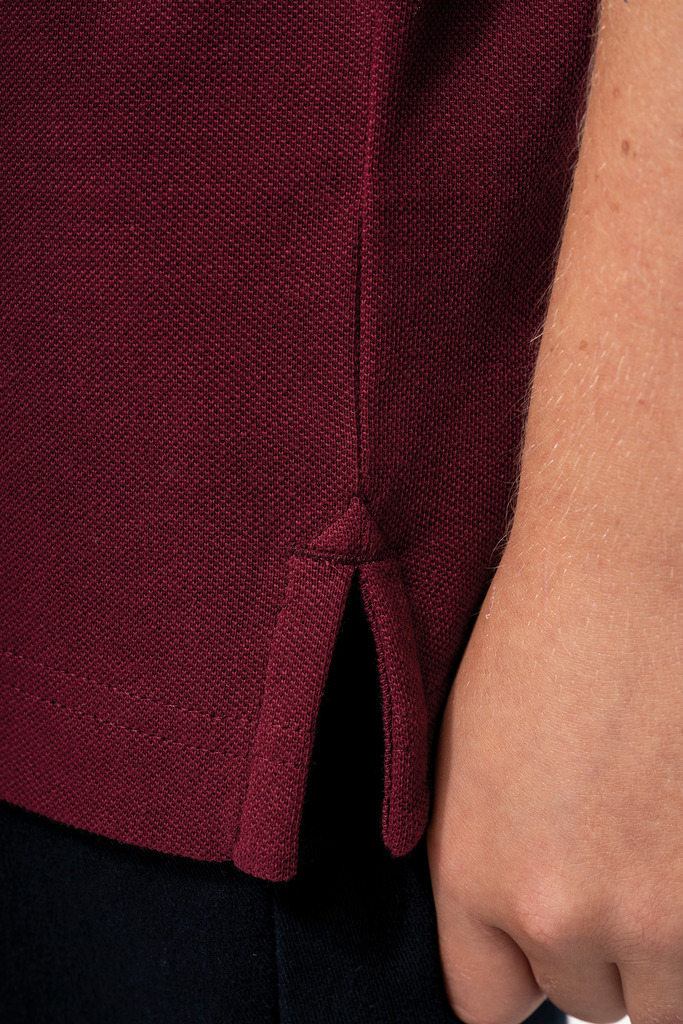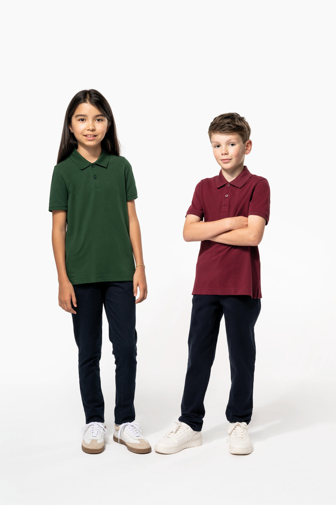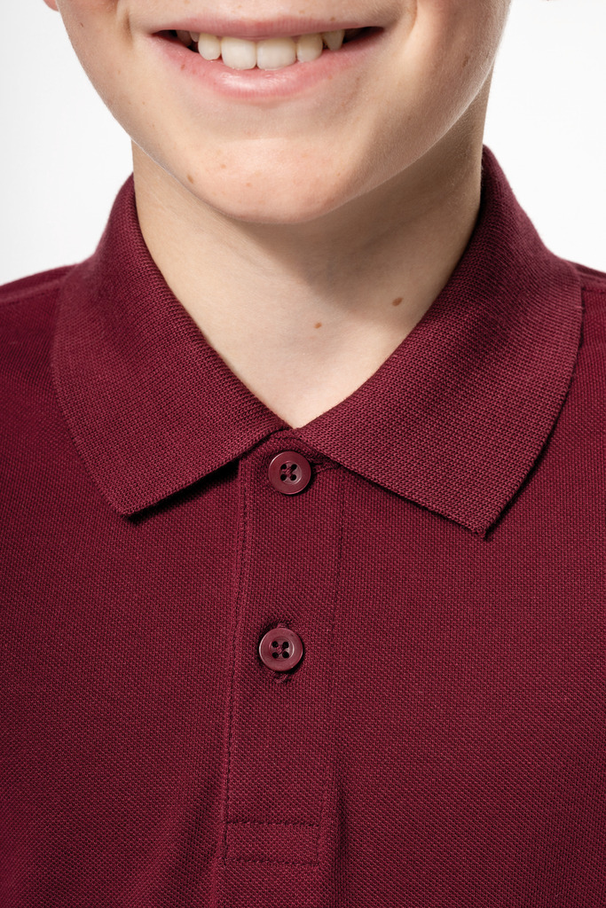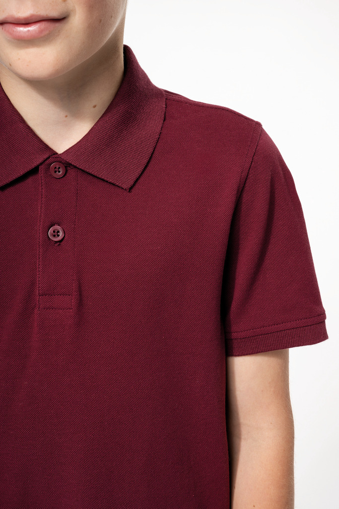 100% algodão biológico. Corte justo. Algodão penteado e malha piqué. Com banho de enzimas. Colarinho e acabamento da manga em malha rib 1×1. Carcela com 2 botões tom sobre tom. Tapa-costuras no material principal tom sobre tom no acabamento interior do colarinho. Reforço nos ombros. Aberturas laterais. Acabamento costura dupla na bainha. Sem etiqueta de marca, apenas indicação de tamanho amovível para facilitar a personalização.