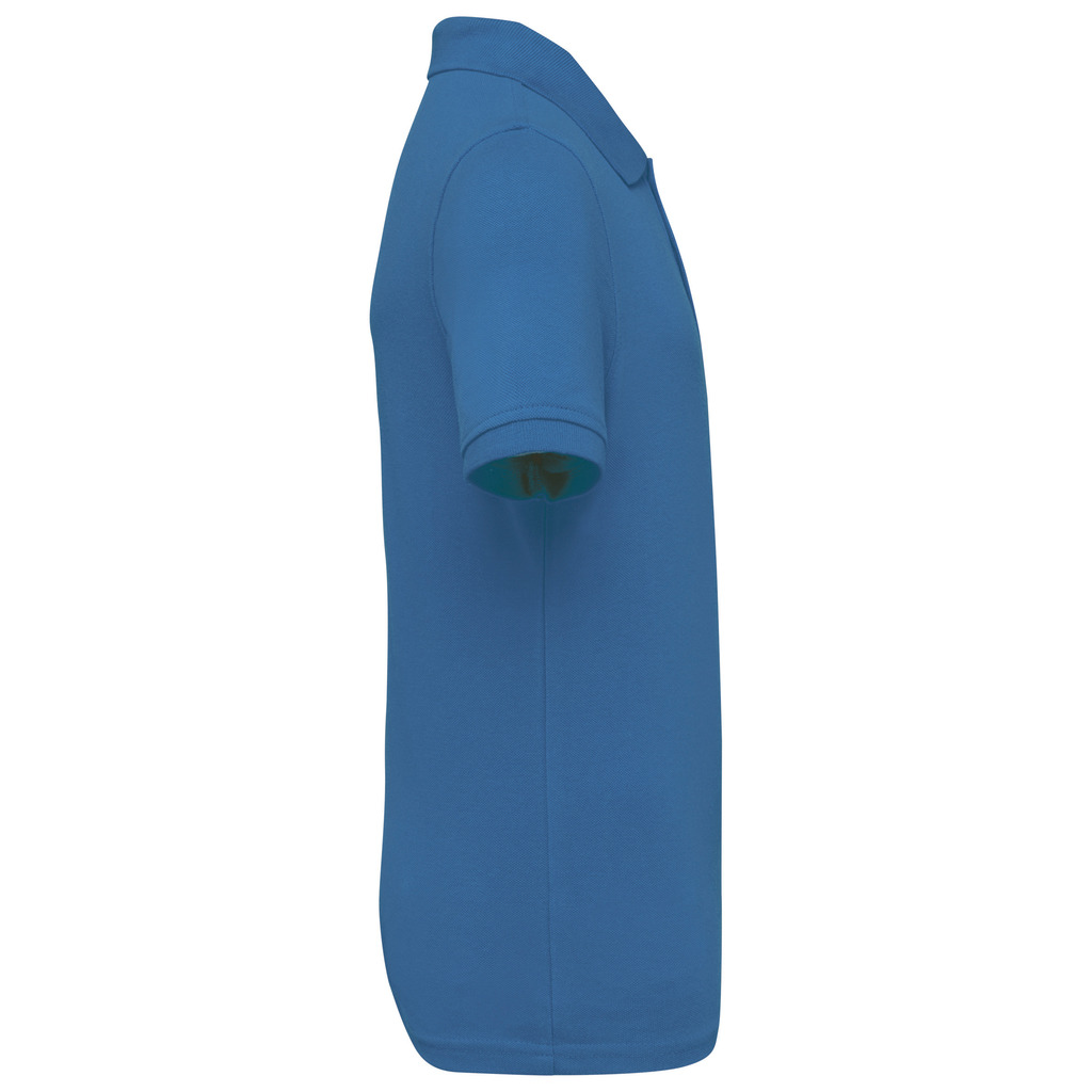100% algodão. Corte justo. Algodão penteado. Malha piqué. Fabricada em Portugal. Colarinho e acabamento da manga em malha rib 1×1. Carcela com 2 botões em contraste com efeito nacarado em todas as cores. Tapa-costuras no material principal tom sobre tom no acabamento interior do colarinho. Reforço nos ombros. Aberturas laterais. Acabamento costura dupla na bainha. Sem etiqueta de marca, apenas indicação de tamanho amovÃvel para facilitar a personalização.