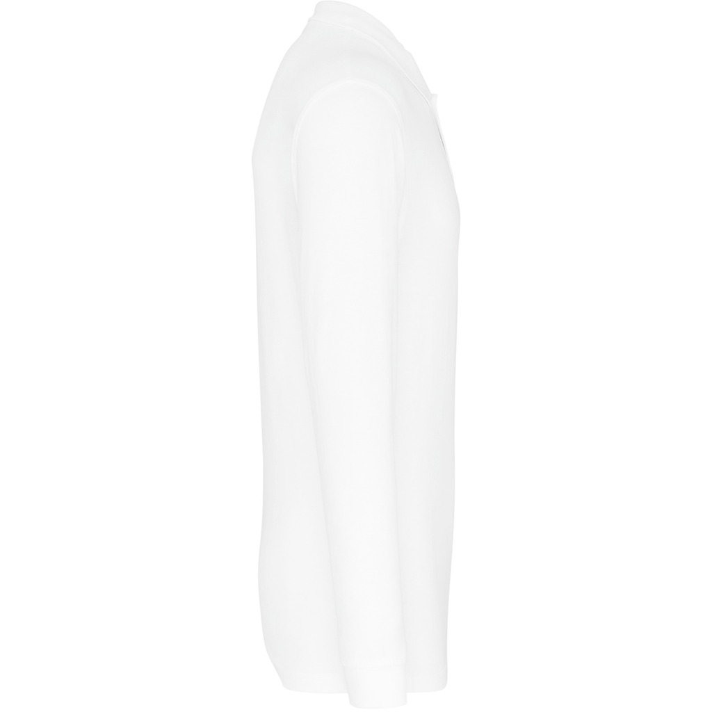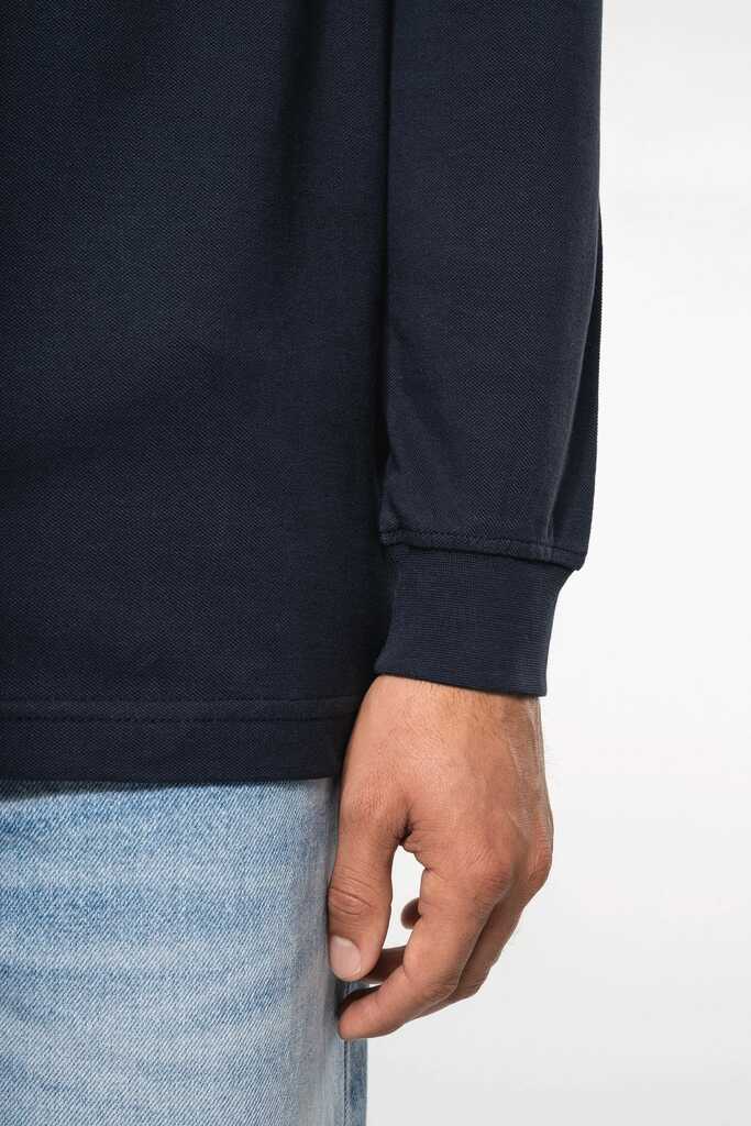 100% algodão piqué pré-encolhido (Oxford Grey: 90% algodão / 10% viscose). Corte confortável. Colarinho e acabamento da manga em malha rib. Carcela com 3 botões à cor. Tapa-costuras no colarinho.