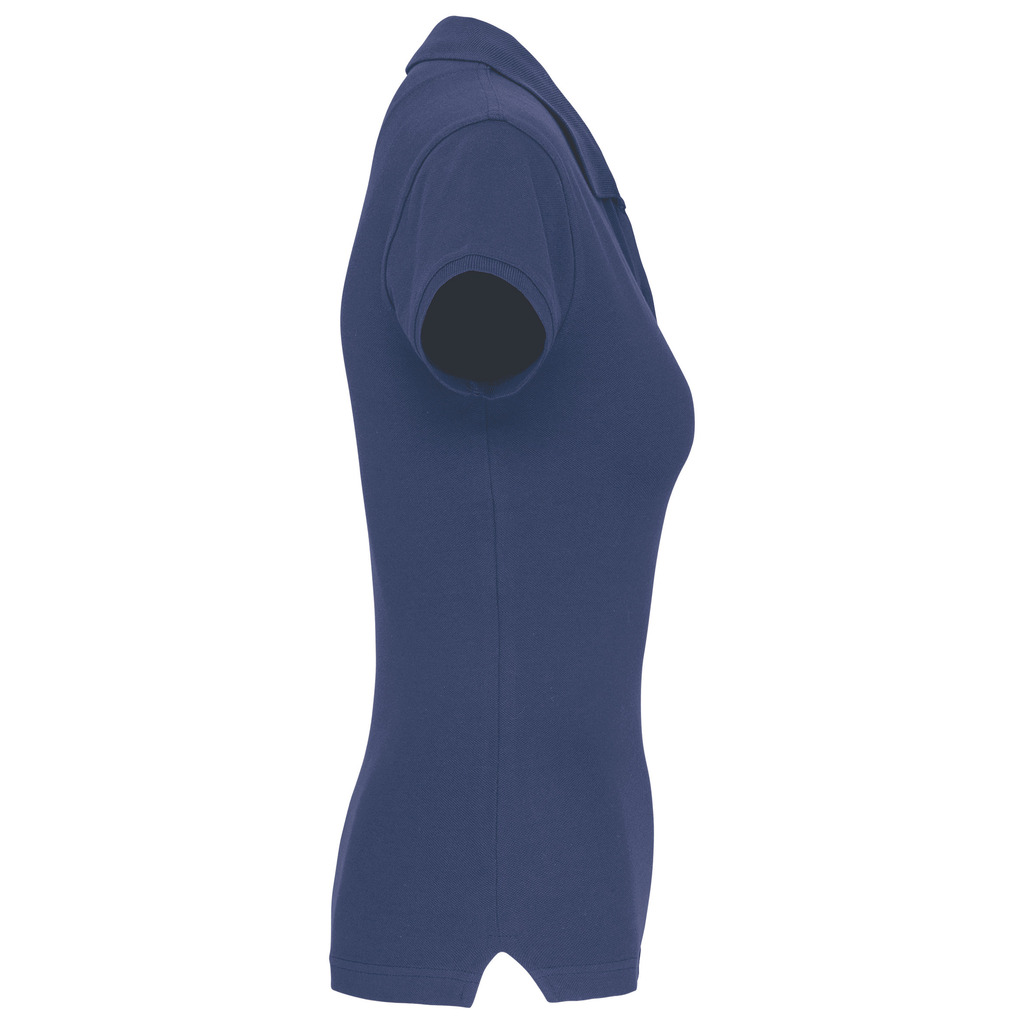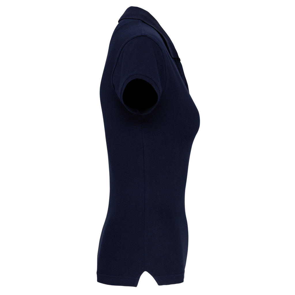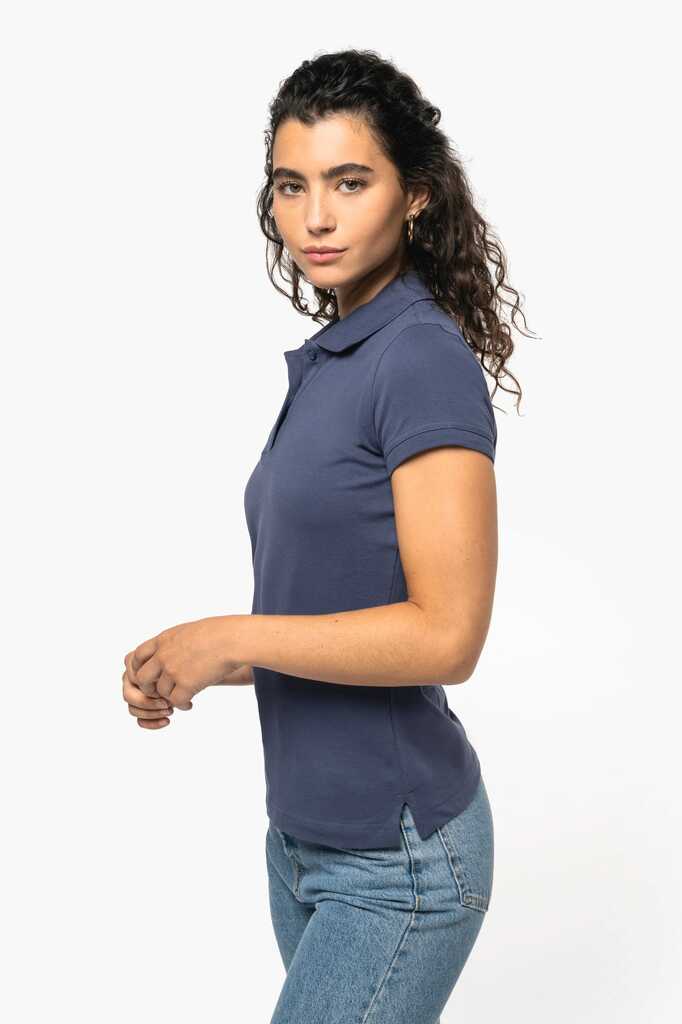 95% algodão / 5% elastano. Malha piqué. Colarinho em malha com tapa-costuras. Mangas com acabamento de malha. Aberturas laterais. Acabamento com costura dupla na bainha. Carcela com 2 botões.