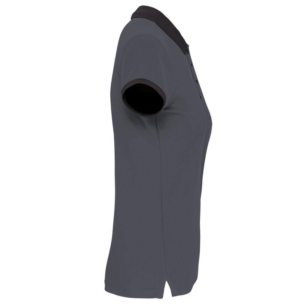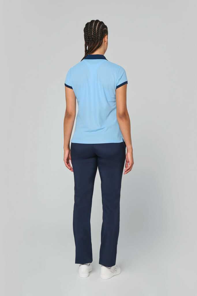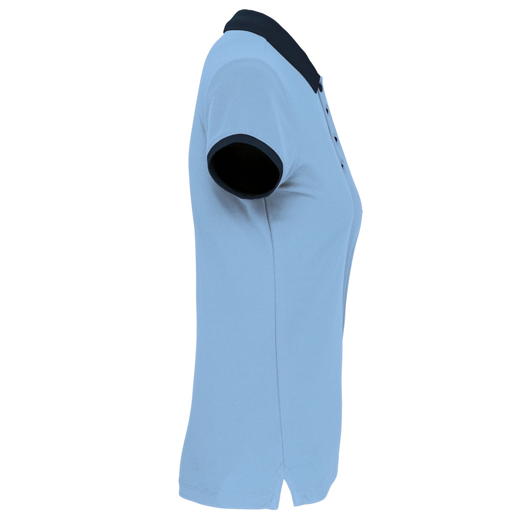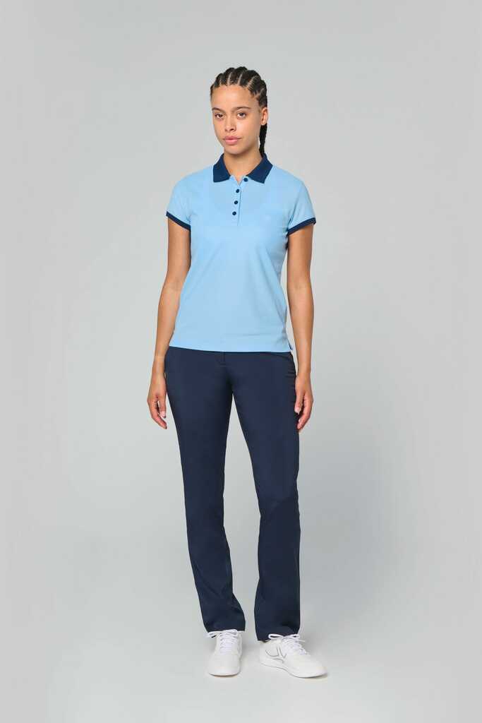 100% poliéster. Malha piqué Cool Plus®. Corte cintado e look moderno. Colarinho e acabamento da manga em malha em contraste. Carcela com 4 botões (contrastante ou simples, dependendo do modelo). Aberturas laterais.