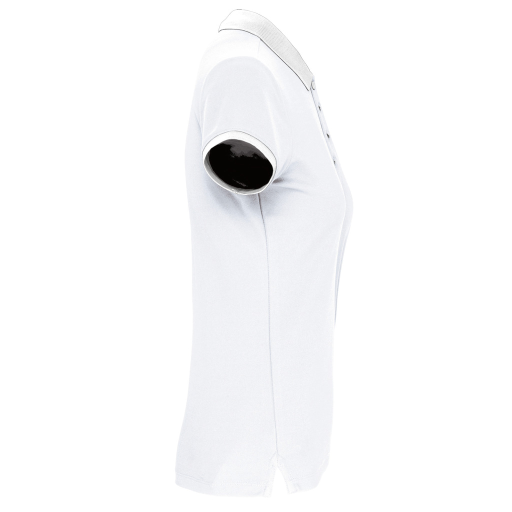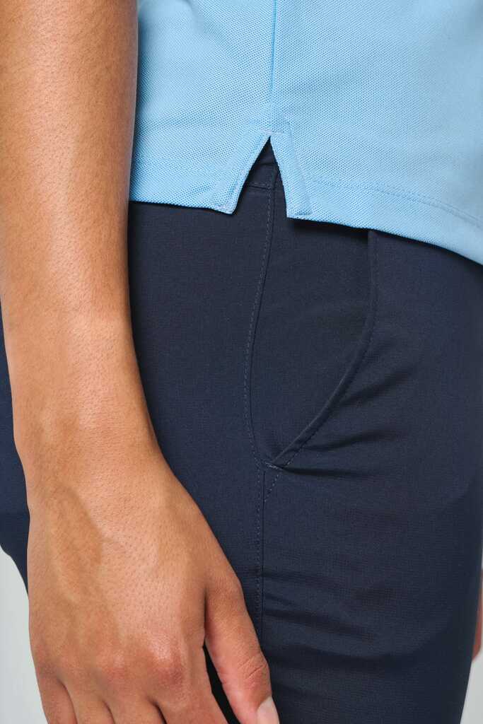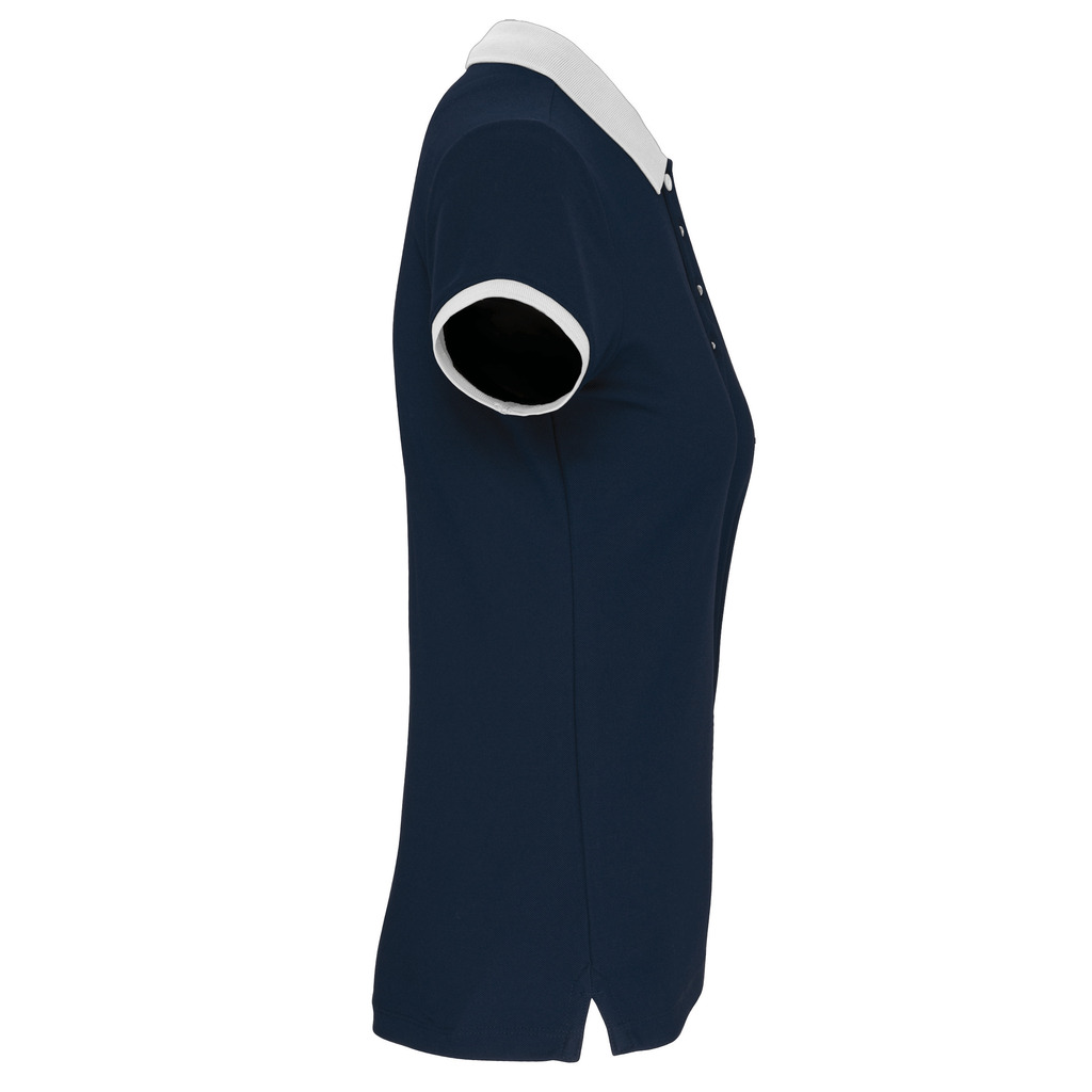 100% poliéster. Malha piqué Cool Plus®. Corte cintado e look moderno. Colarinho e acabamento da manga em malha em contraste. Carcela com 4 botões (contrastante ou simples, dependendo do modelo). Aberturas laterais.