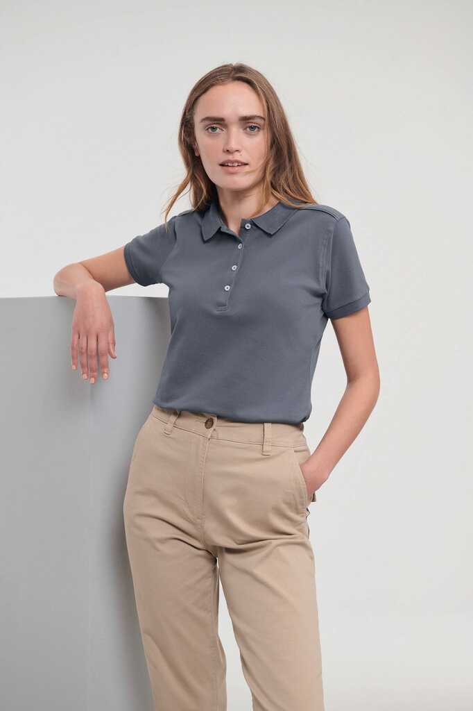 95% algodão / 5% Lycra®. Carcela com 4 botões em contraste. Colarinho e acabamento das mangas em malha. Colarinho curto. Reforço nos ombros. Aberturas laterais com reforço Chevron. Muito suave ao toque. Corte slim.