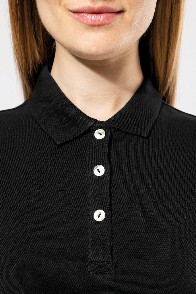 100% algodão. Malha piqué em algodão Supima®. Tecido extremamente fino e de excelente qualidade. Toque suave e agradável. Corte cintado. Colarinho com acabamento em malha rib e tapa-costuras fantasia e em contraste. Carcela com 3 botões em pérola verdadeira. Acabamento com costura fantasia na bainha e acabamento da manga em malha rib. Peça fornecida com etiqueta sem marca, contendo apenas a indicação do tamanho para facilitar a personalização.