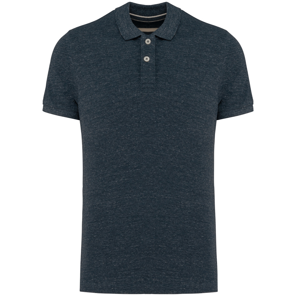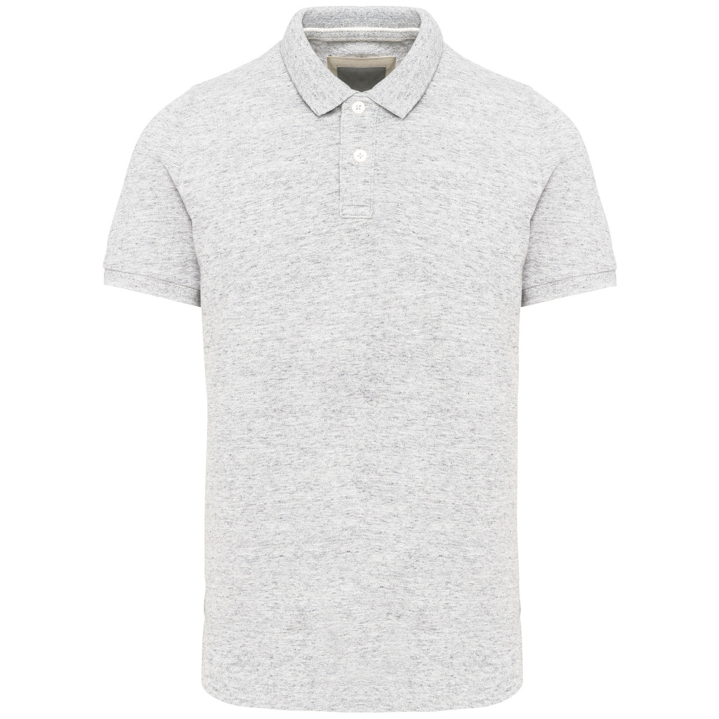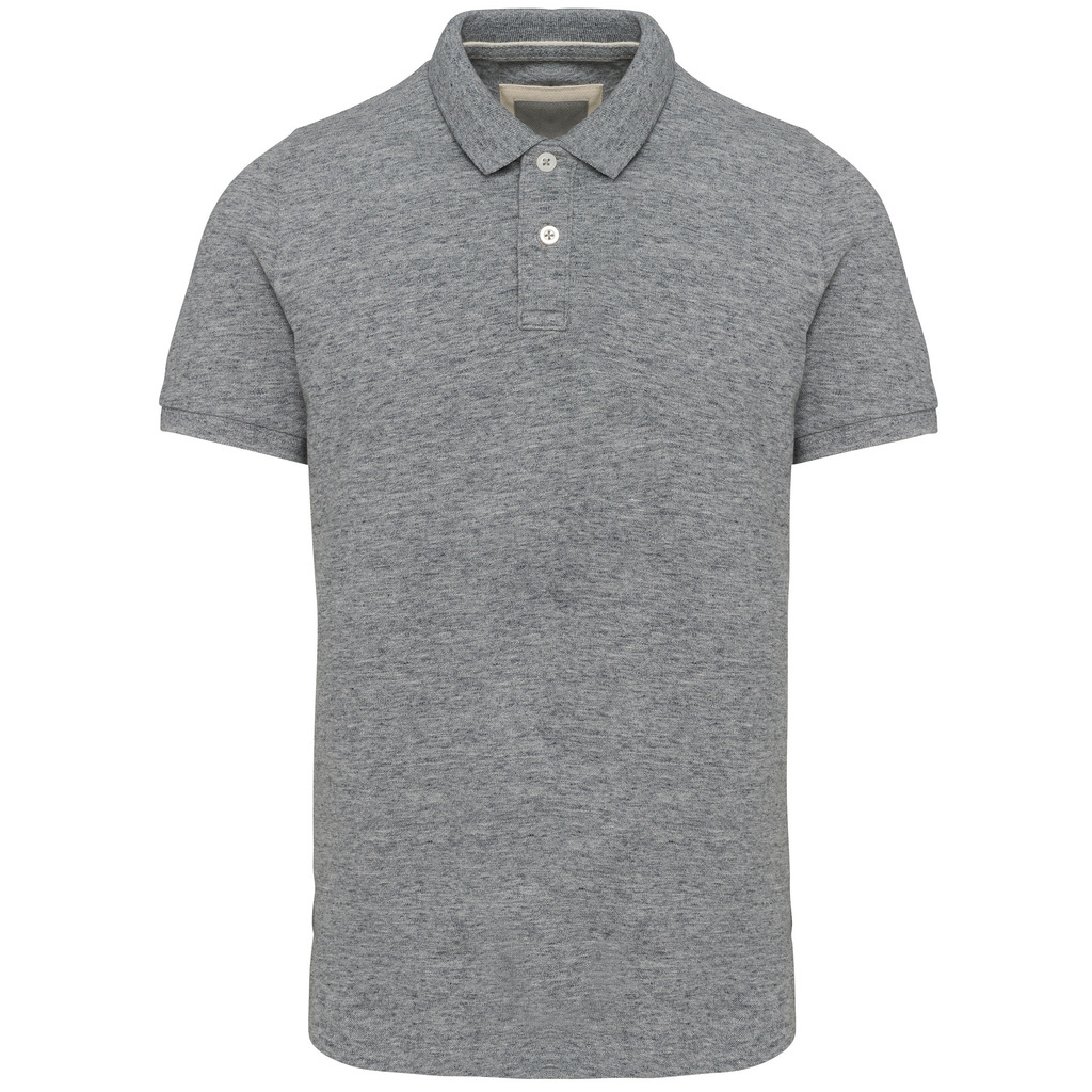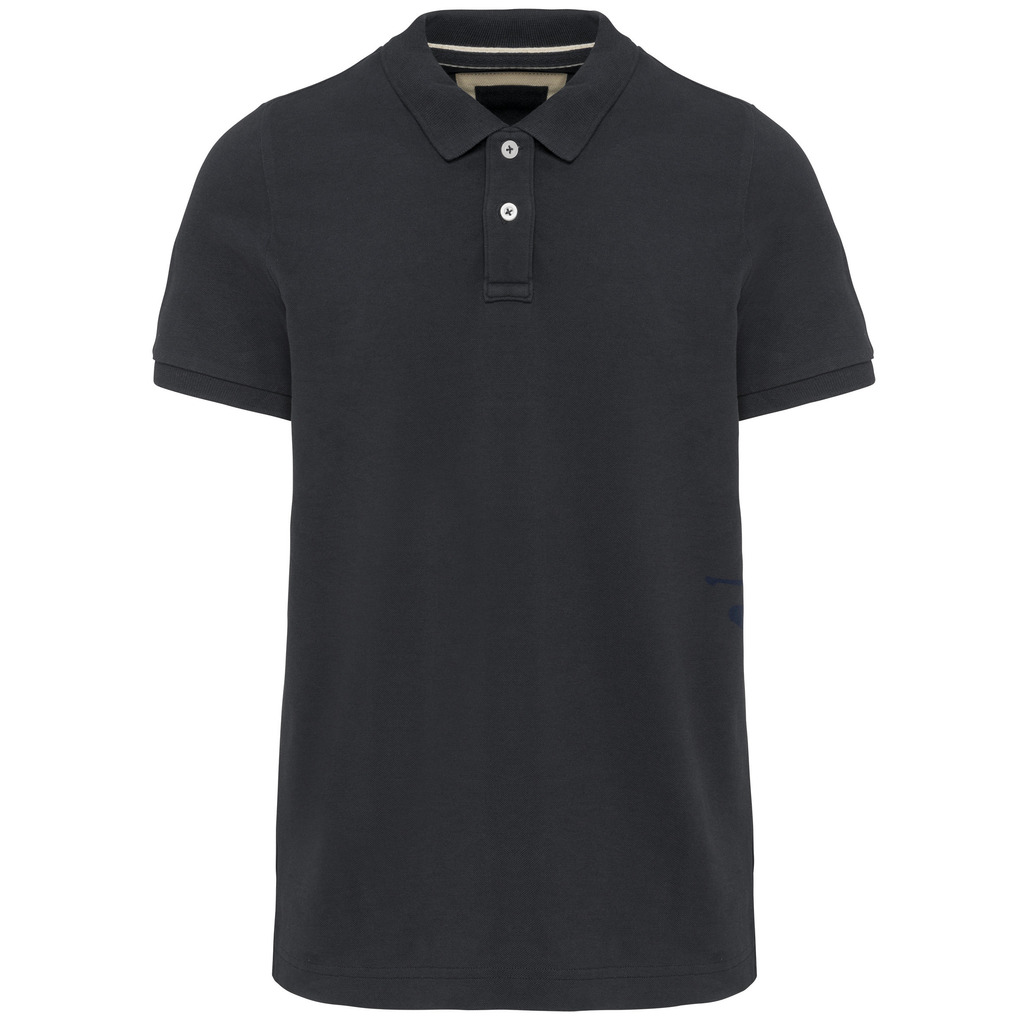 100% algodão (Ash Heather: 98% algodão / 2% viscose). Malha piqué aspeto “Vintage”. Colarinho em malha rib. Tapa-costuras duplo fashion (efeito Chevron) no decote e nas aberturas laterais. Carcela com 2 botões em contraste. Acabamento com costura dupla na bainha e acabamento da manga em malha rib. Peça fornecida com etiqueta sem marca, contendo apenas indicação de tamanho para facilitar a personalização. Este produto foi submetido a um tratamento especial e apresenta um aspecto intencionalmente envelhecido. Este procedimento implica variações de cor de produto para produto, o que torna cada peça única.
