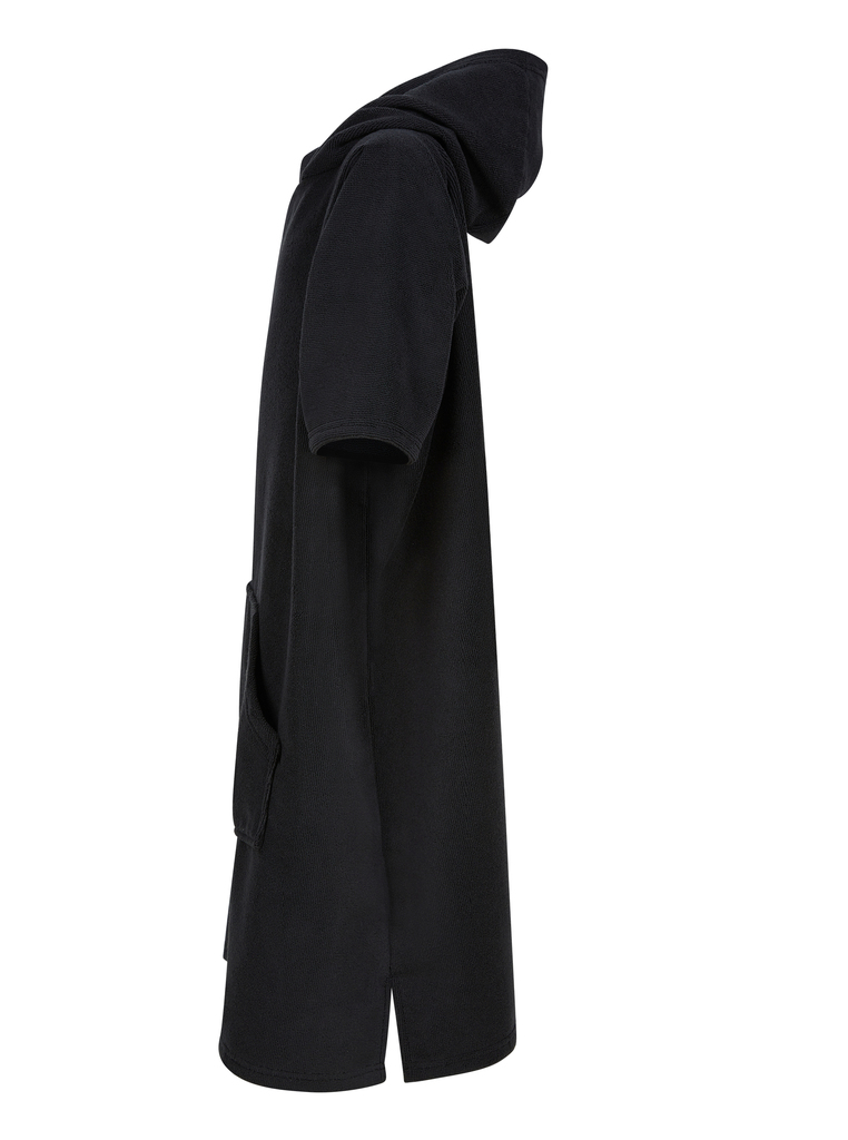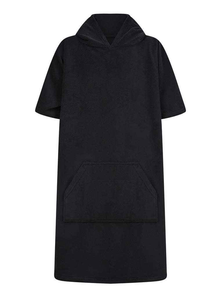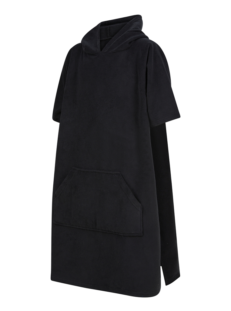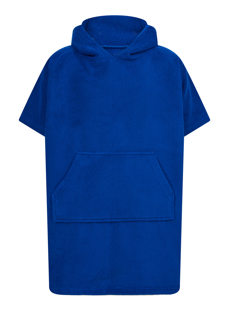 100% poliéster. Microfibra de poliéster. Poncho com capuz integrado. Bolso à canguru com um bolso no interior para o telefone apenas para os tamanhos 6/9 e 10/13 anos. Aberturas laterais.