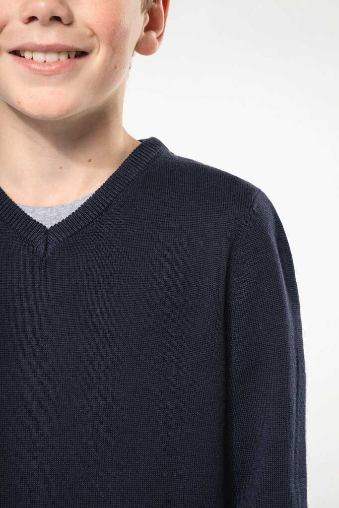 50% algodão / 50% acrílico. Acrílico arqueado 12. Decote com acabamento em malha com espessura dupla. Tapa-costuras no decote. Acabamento da manga e bainha em malha rib.