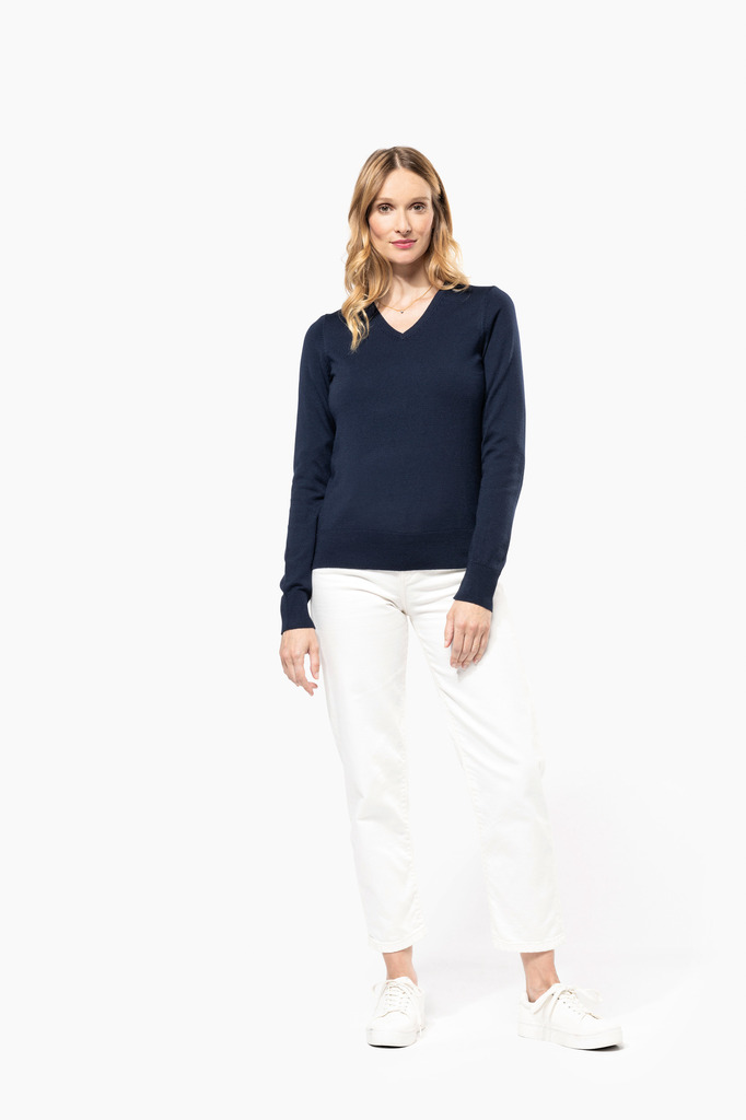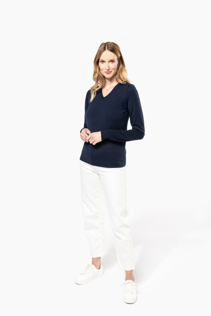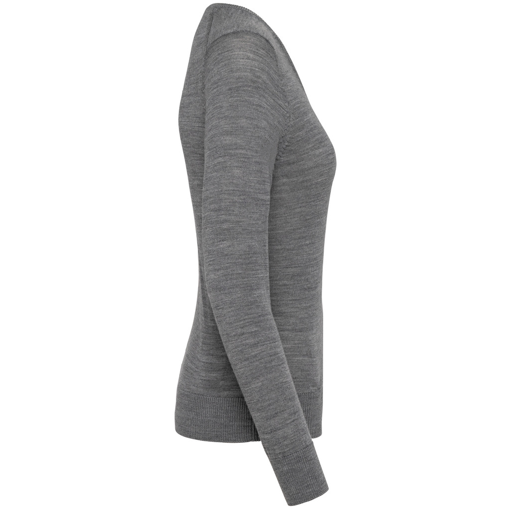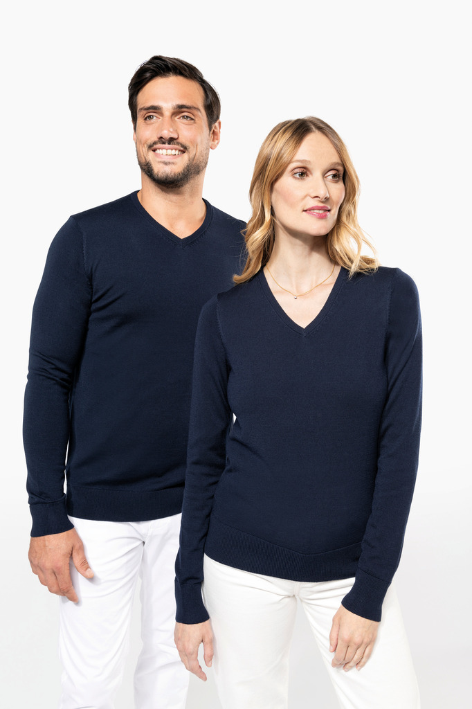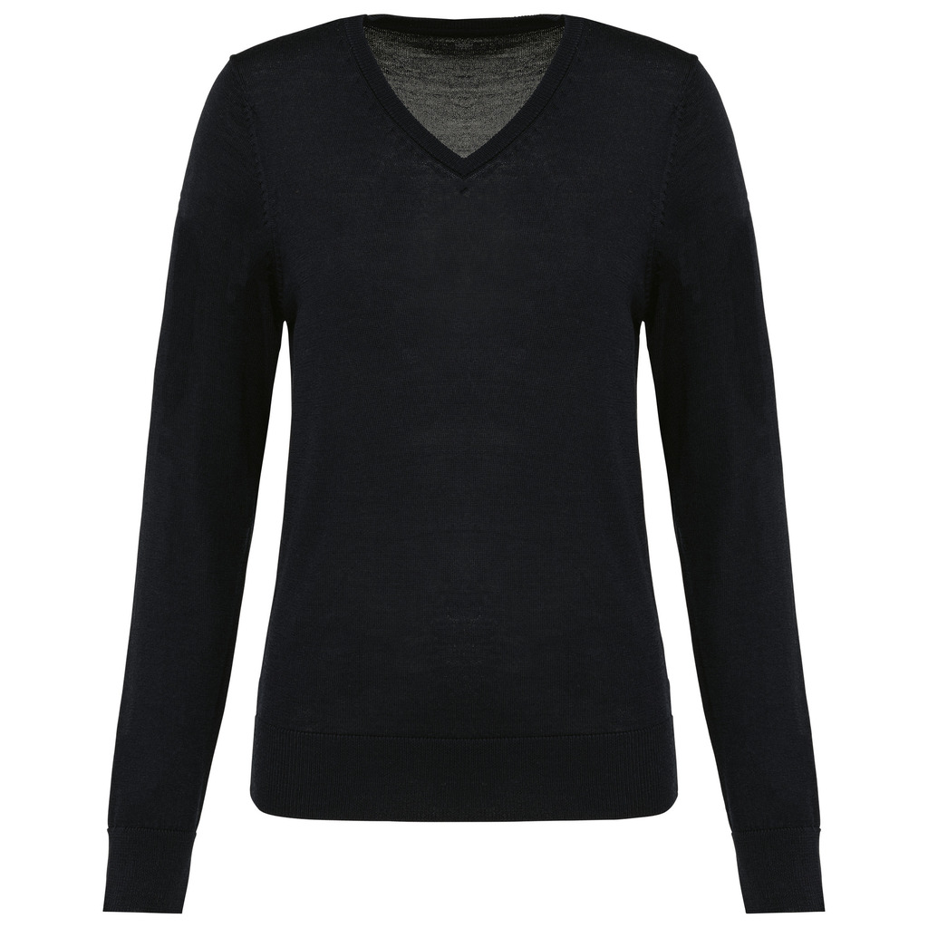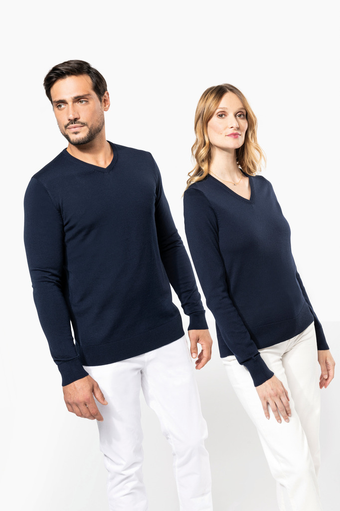 100% Lã Merino extrafina penteada. Arqueado 14. Muito fashion: tricotada na forma e montada na máquina das malhas. Decote, punhos e bainha em malha rib 1 x 1.