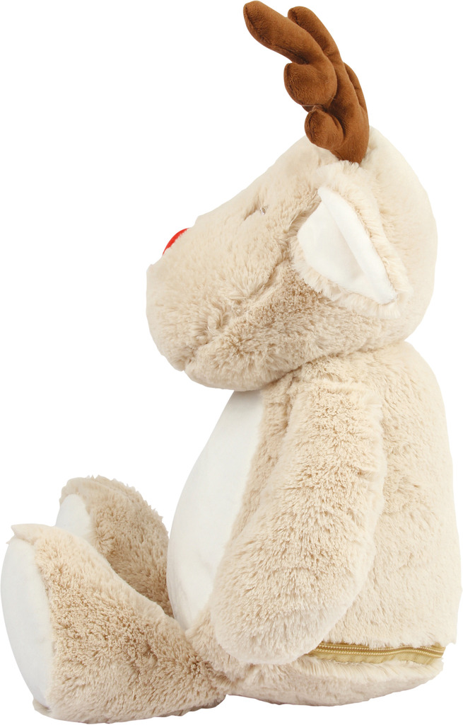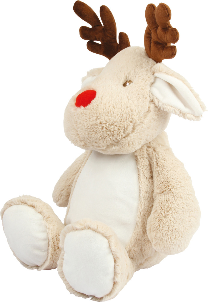 Peluche 100% poliéster. Olhos de cor em contraste e nariz em tecido em contraste. Chifres em tecido em contraste. Painel de cor creme ao nÃvel da barriga e do interior das orelhas. Fecho de acesso para personalização. Enchimento interior amovÃvel para facilitar a personalização. 46 cm de altura. Pode ser bordado ou personalizado através de impressão ou transfer. Em conformidade com a norma europeia EN71 de segurança dos brinquedos. Ideal para todas as idades.