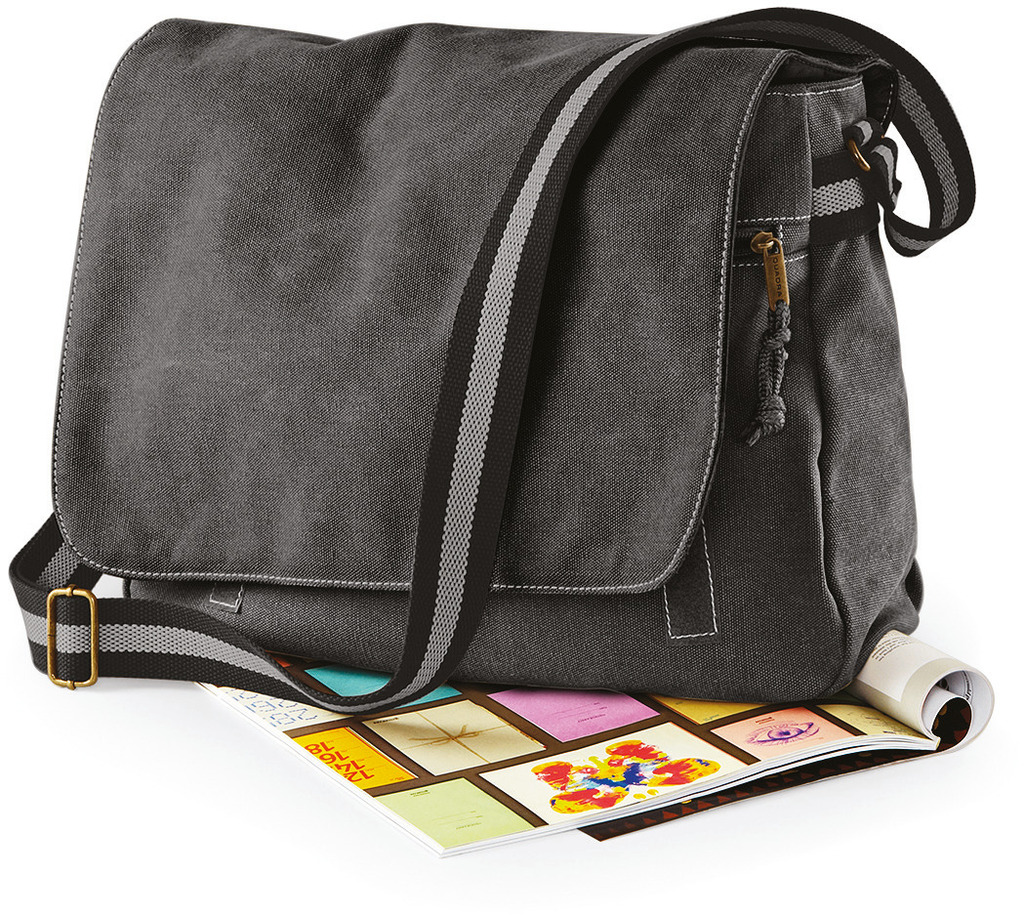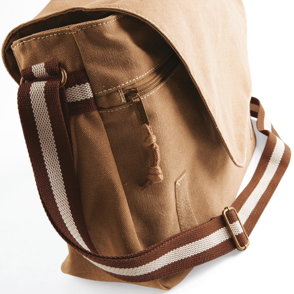Tecido canvas grosso. Alça a tiracolo ajustável. Bolso central + Bolso frontal com fechos. Fecho Rip-Strip.