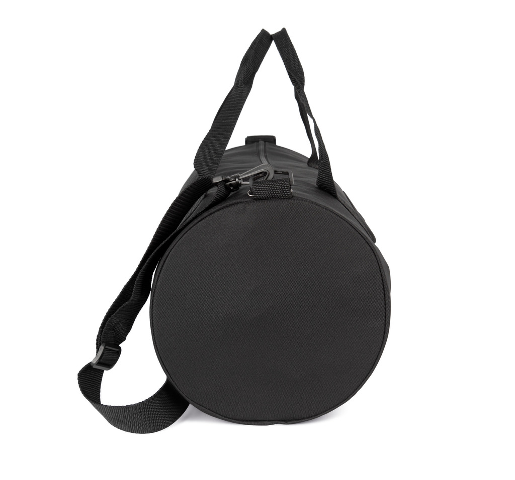 100% poliéster 600DPVC RPET. Saco cilíndrico concebido a partir de 50% poliéster reciclado. Bolso frontal com fecho. Alça a tiracolo regulável.