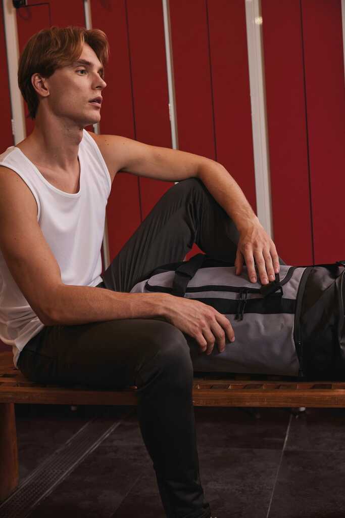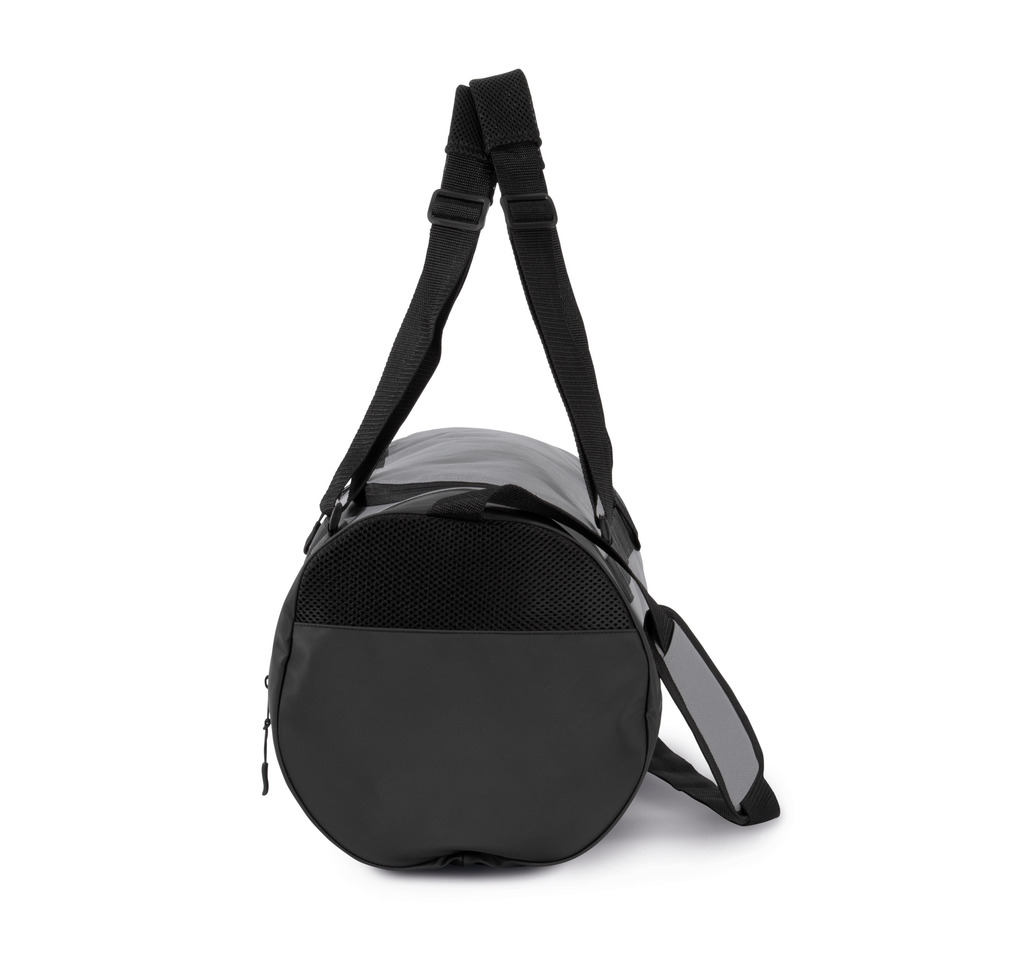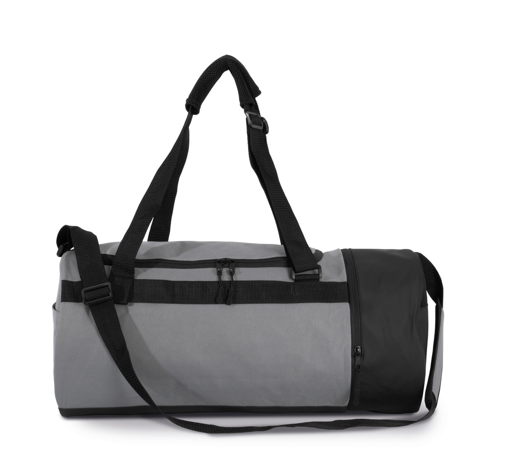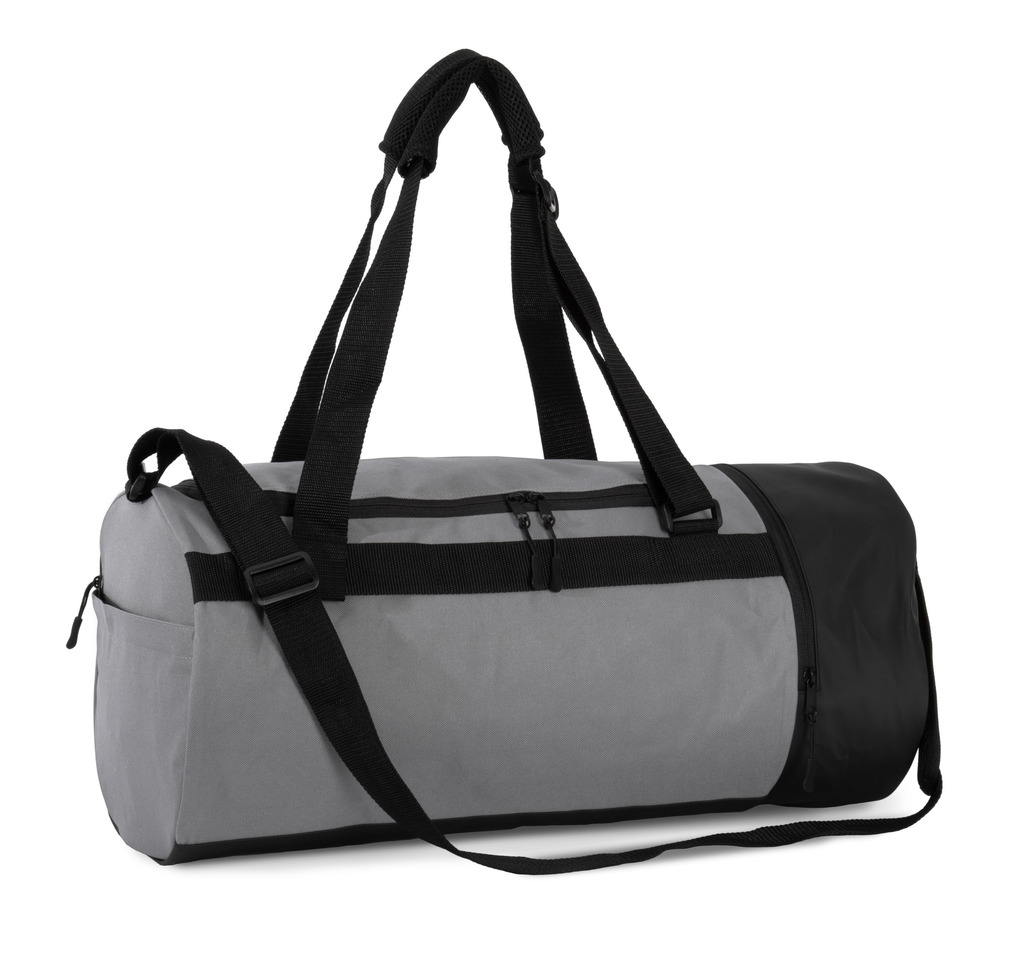 100 % poliéster. Saco de desporto com forma tubular em poliéster 600D. Com um compartimento separado para calçado, fecho e uma alça amovível. Possibilidade de usar como mochila, graças às duas alças largas.
