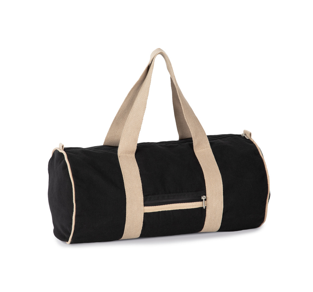 Black Night: 67% algodão reciclado/30% poliéster reciclado/3% de outras fibras. Ecume: 75% algodão reciclado/22% poliéster reciclado/3% de outras fibras. As pegas com 4,25 cm para conforto extra com cores em contraste estão cosidas em volta do saco para conferir um toque de originalidade e uma maior resistência. O saco possui um bolso frontal com fecho.