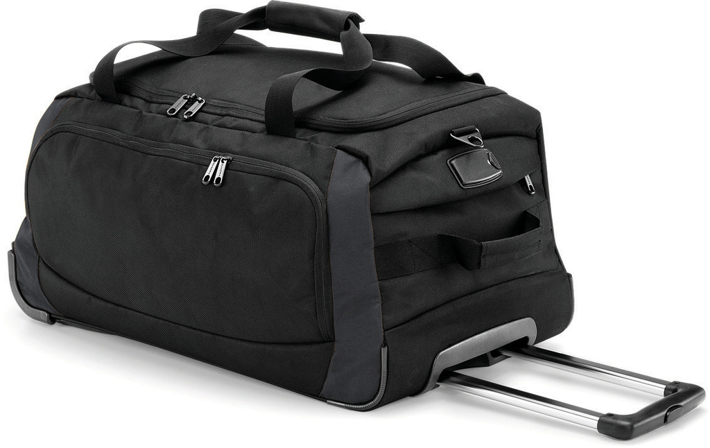 Poliéster 1680D, pega trolley retráctil, rodas súper resistentes, alça ajustável com reforço, pegas reforçadas, pega que devido ao reforço não magoa a mão, porta-identificação, bolso frontal com fecho, bolso lateral com fecho, vários bolsos no interior. Peso do produto: 3,48 kg.
