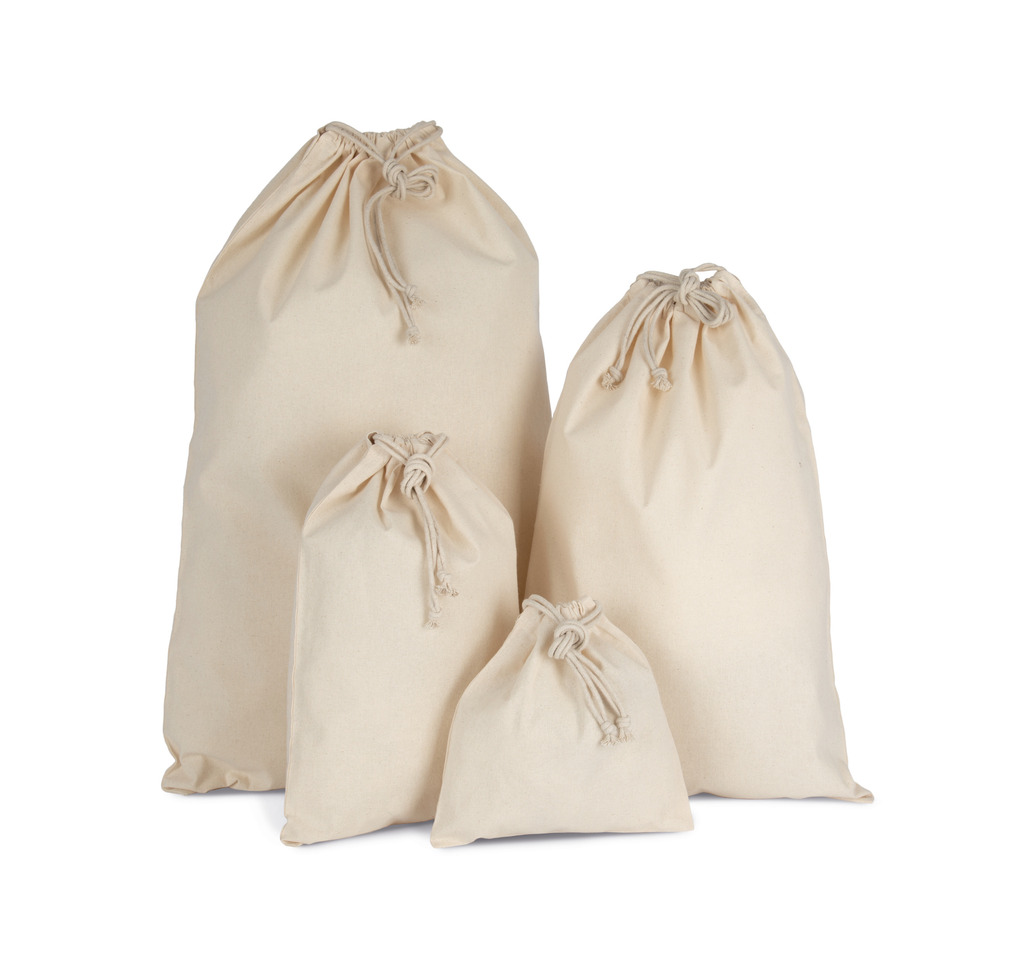 100% algodão biológico. Saco versátil com cordão de ajuste.