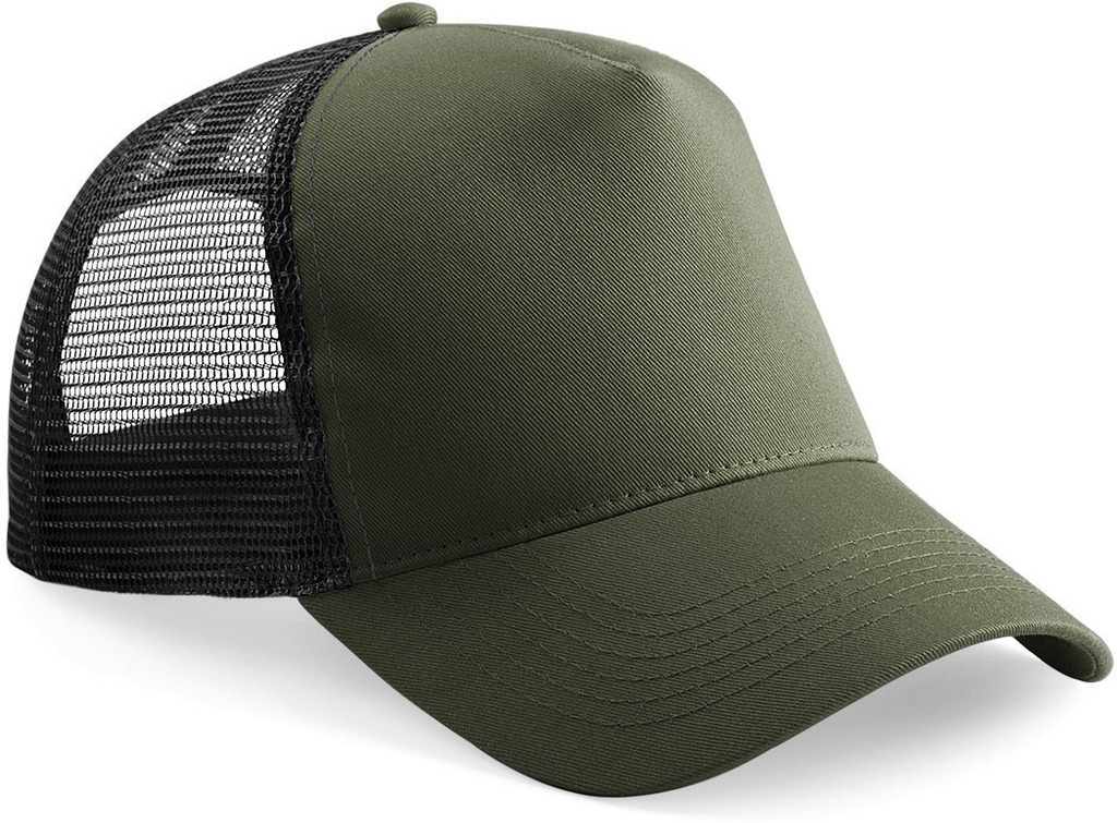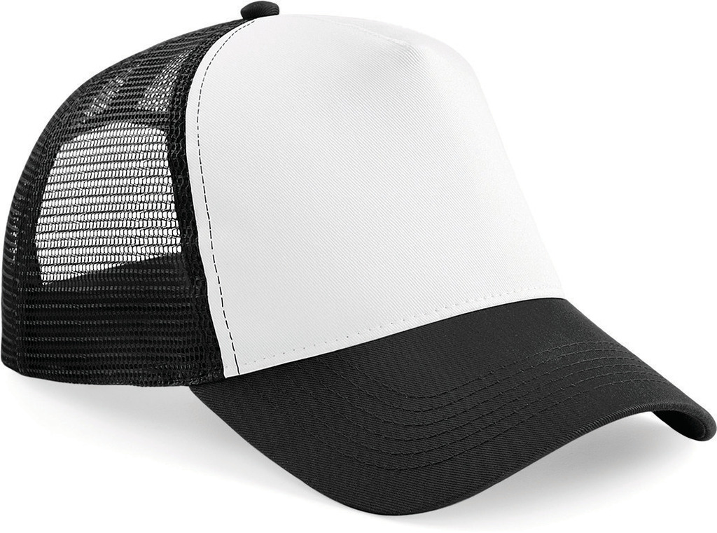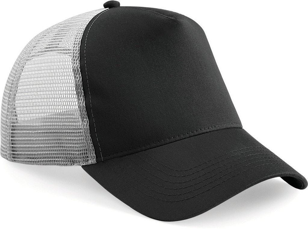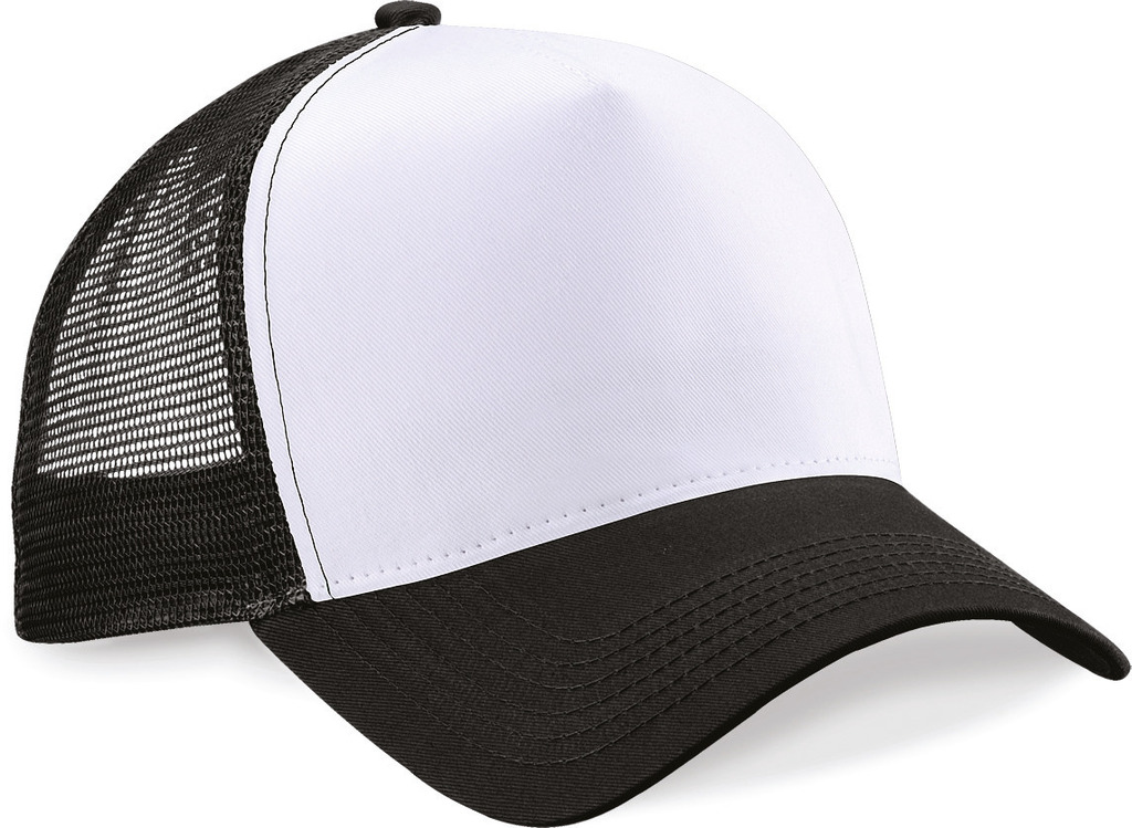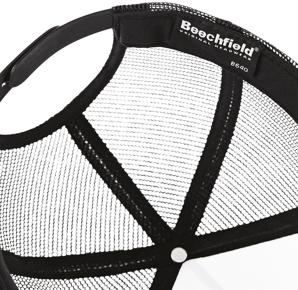 Painel frontal e viseira 100% algodão. Painéis traseiros em rede 100% poliéster. 5 painéis. Ajustável com fivela retro Snapback.