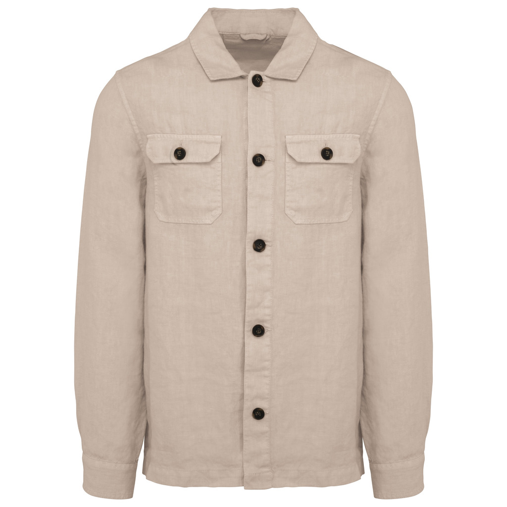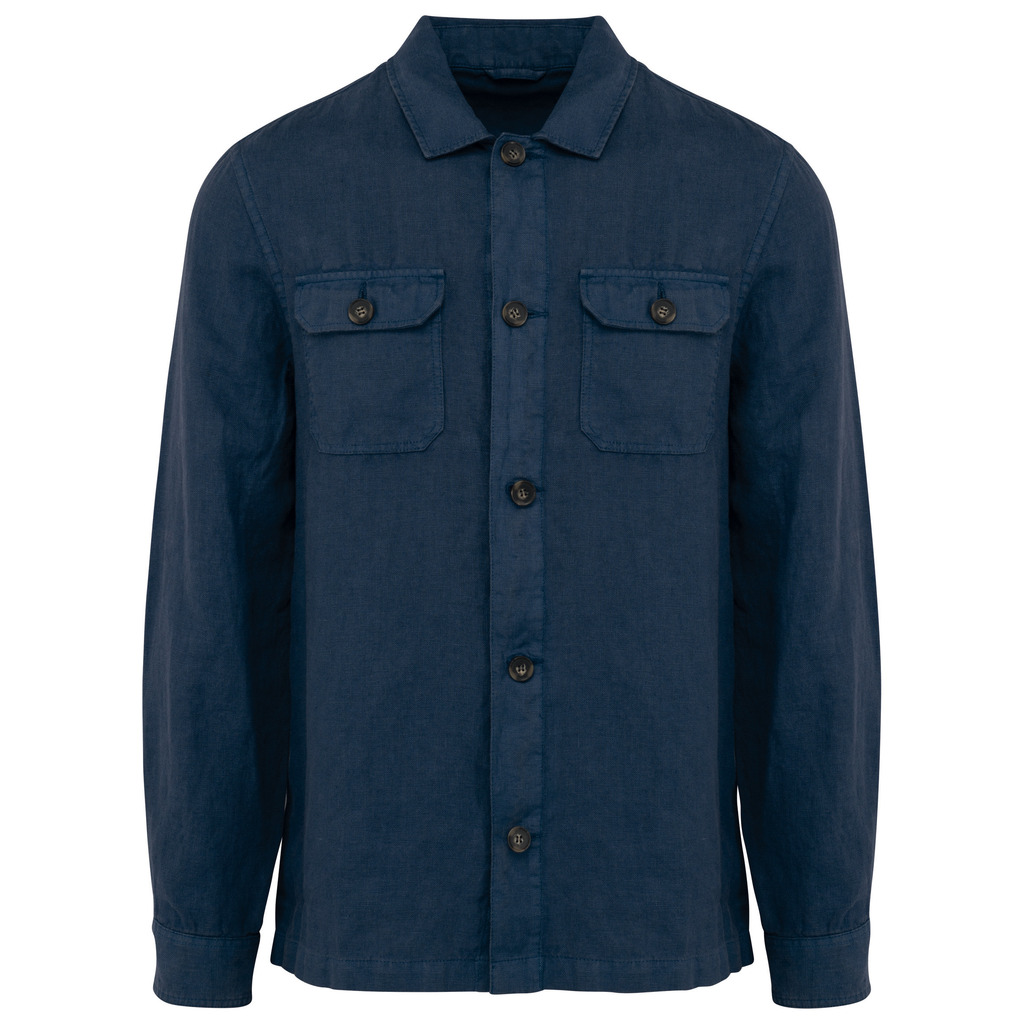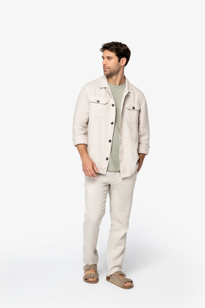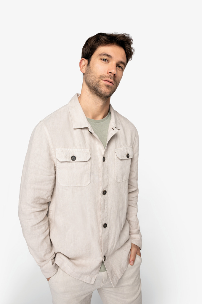 Sobrecamisa eco-responsável com aspecto lavado em linho de homem