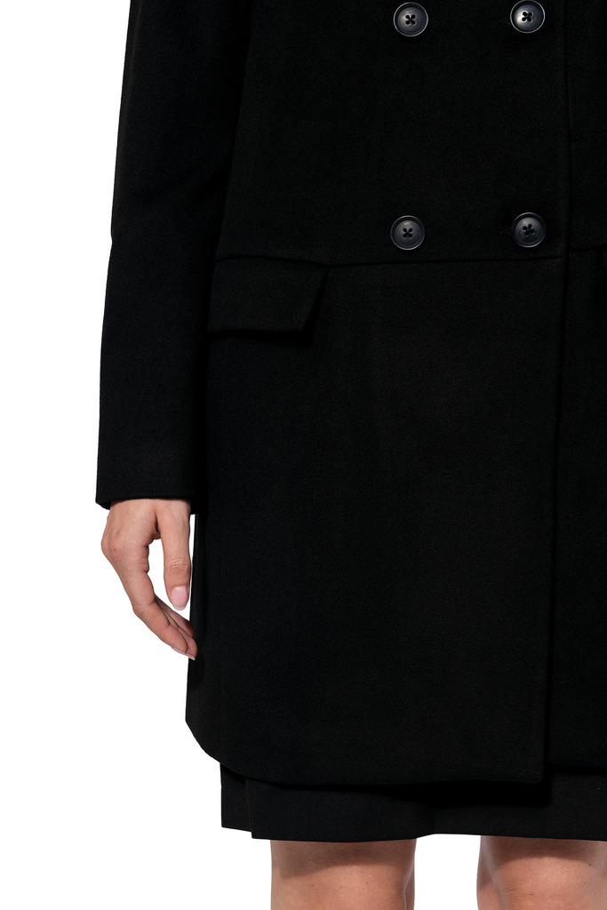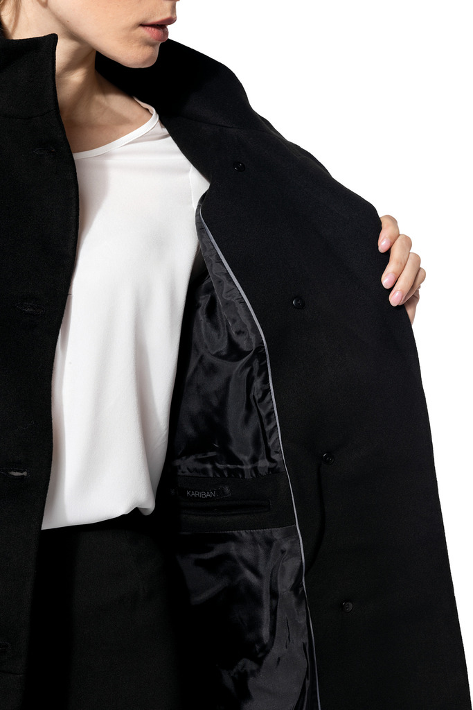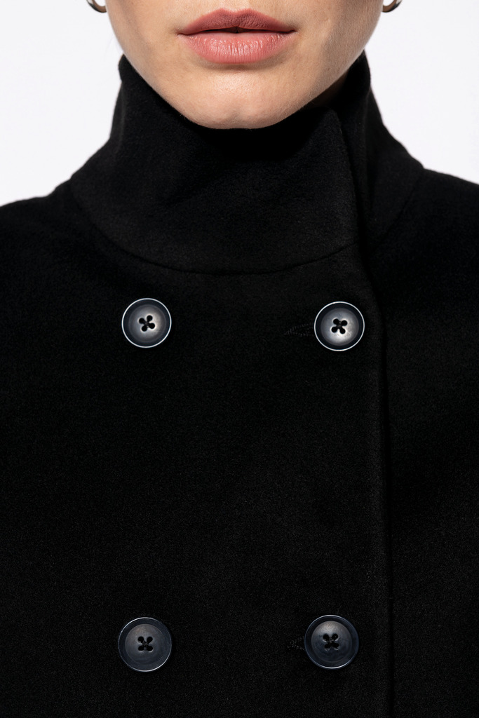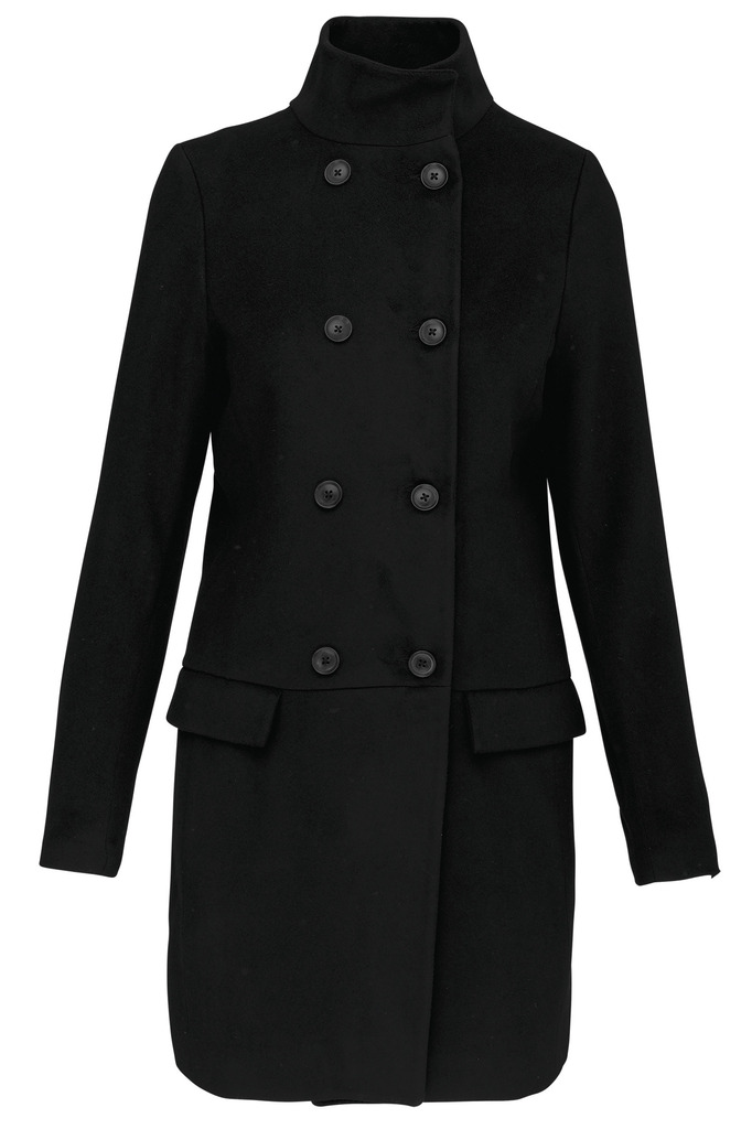 79% poliéster / 18% viscose / 3% elastano. Forro 100% poliéster taffeta. Gola subida. Fecha com 2 x 4 botões. 2 bolsos frontais com pala. 1 bolso interior com detalhe. Ideal para usar com um fato ou vestido. Este casaco é perfeito para um look corporate.