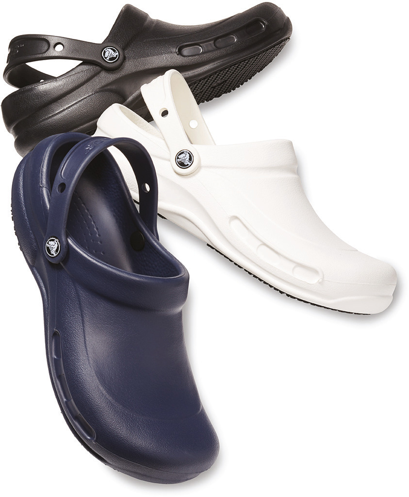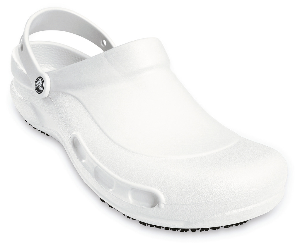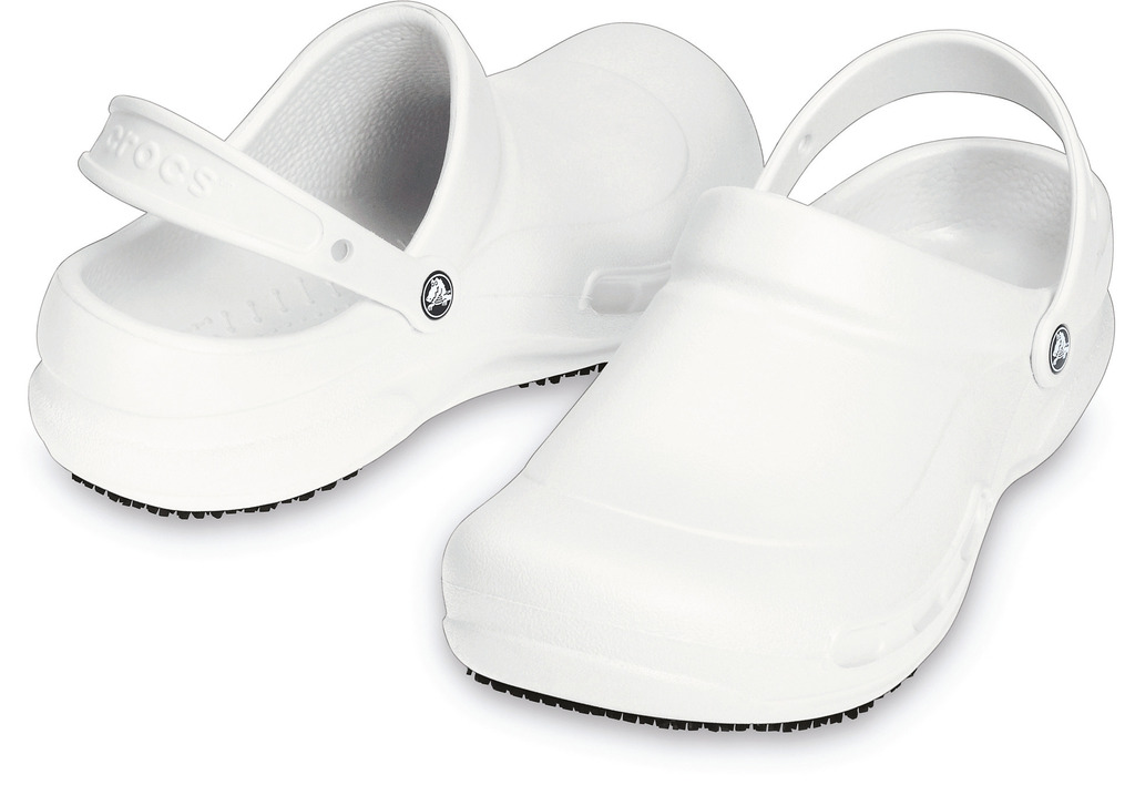 Socas confortáveis, destinados aos profissionais da restauração, da hotelaria e da saúde. Com o seu design antiderrapante e a protecção adicional ao nÃvel dos dedos dos pés, as socas Crocsâ„¢ Bistro oferecem tudo o que os seus pés necessitam no local de trabalho! Este modelo com sola antiderrapante Crocs Lockâ„¢ é perfeitamente ajustado em resina Crosliteâ„¢ para um conforto, uma leveza e uma durabilidade perfeitas. O conforto é reforçado através da palmilha que beneficia de uma forma especÃfica e de uma presilha no calcanhar Crosliteâ„¢ para um bom ajuste ao pé. Um design fechado à frente e uma zona do metatarso mais espessa protegem a parte superior do pé do derrame de lÃquidos. Limpeza fácil com água e sabão, secagem rápida. Certificação CE e testes efectuados de acordo com a norma ASTM F2913-11. Em conformidade com a norma EN ISO 20347:2012 OB SRC.
